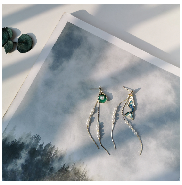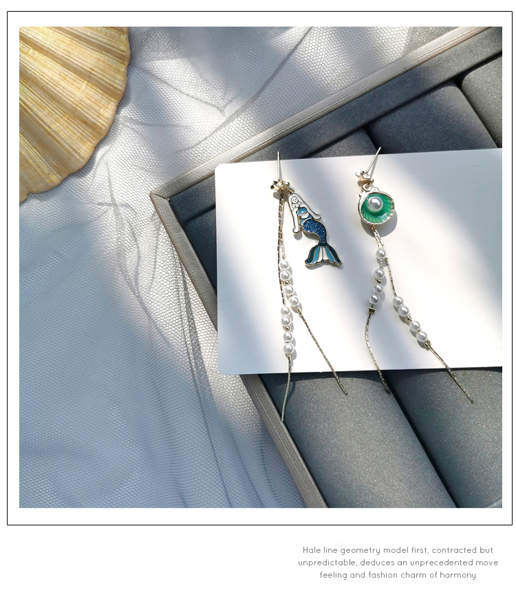 2019新款潮小眾設計不對稱個性耳環女氣質長款流蘇珍珠耳墜耳釘1入