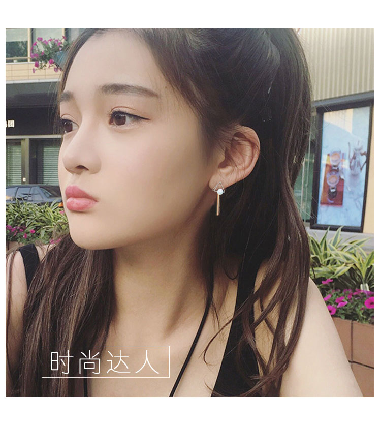 韓國簡約個性氣質長款潮人耳環純銀防過敏耳墜百搭吊墜創意耳釘女1入