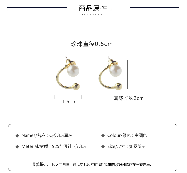 高級感網紅百搭珍珠耳釘女純銀小眾法式優雅氣質耳環2019新款潮1入