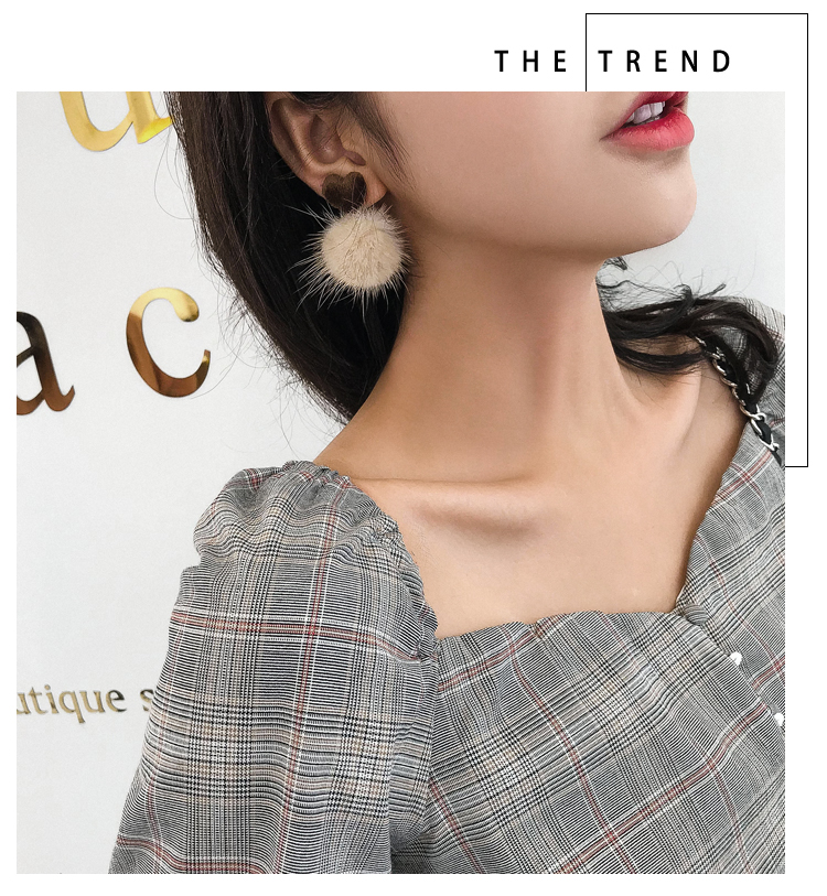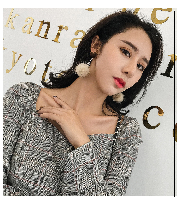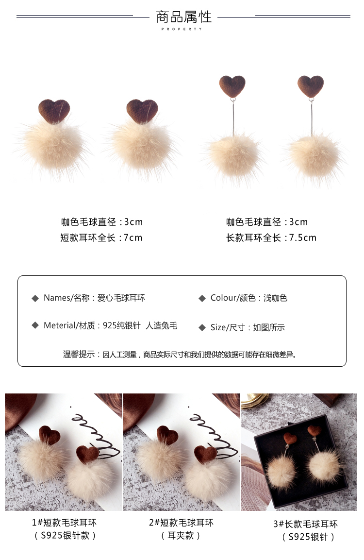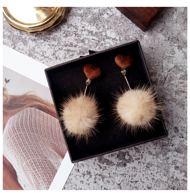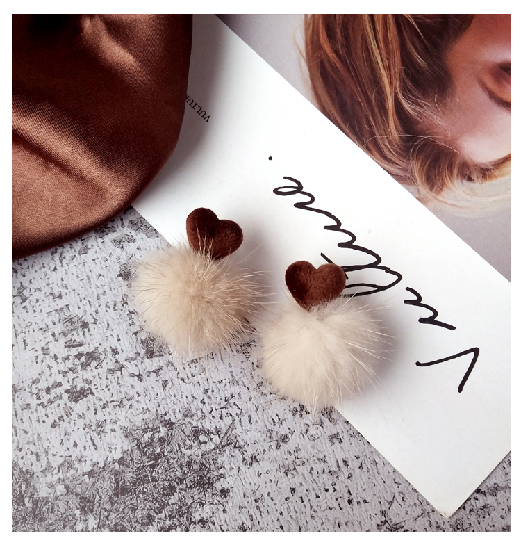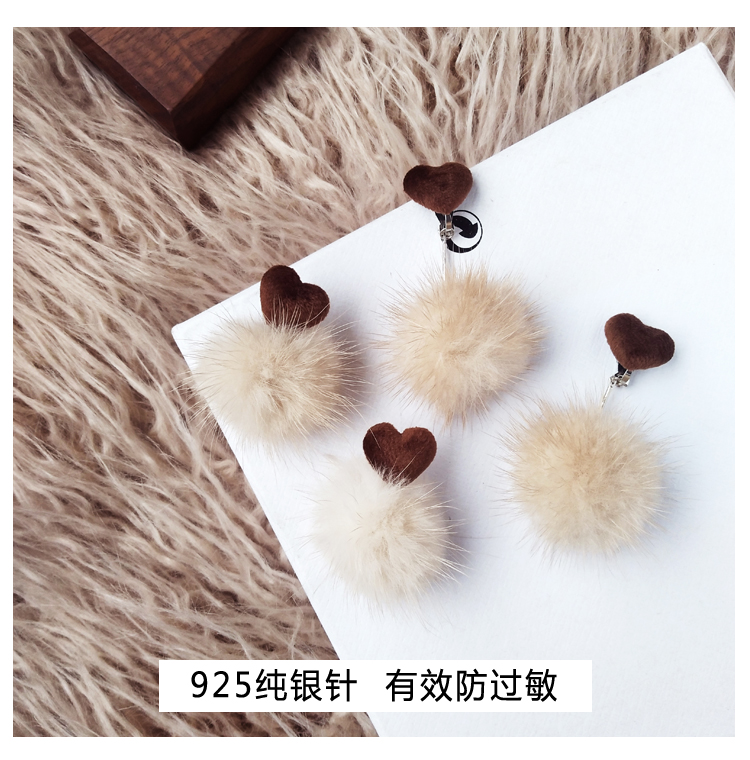 2019秋冬新款愛心毛絨毛球耳環毛毛球韓國氣質長款耳墜無耳洞耳夾1入