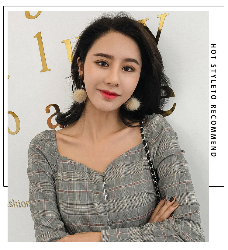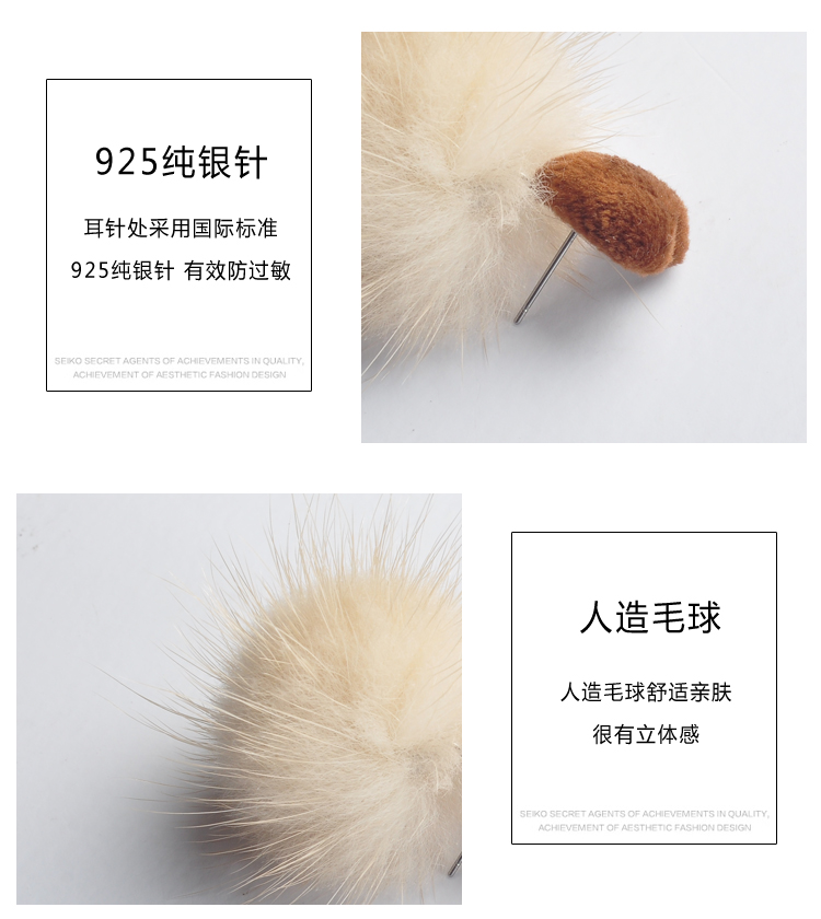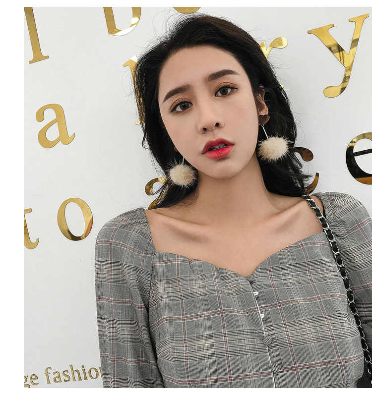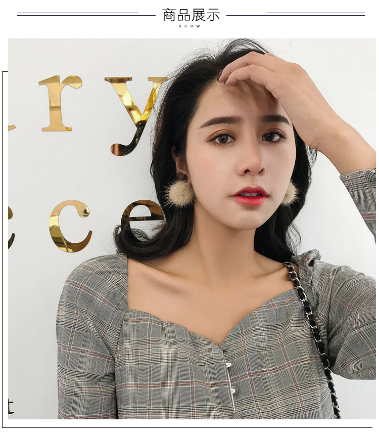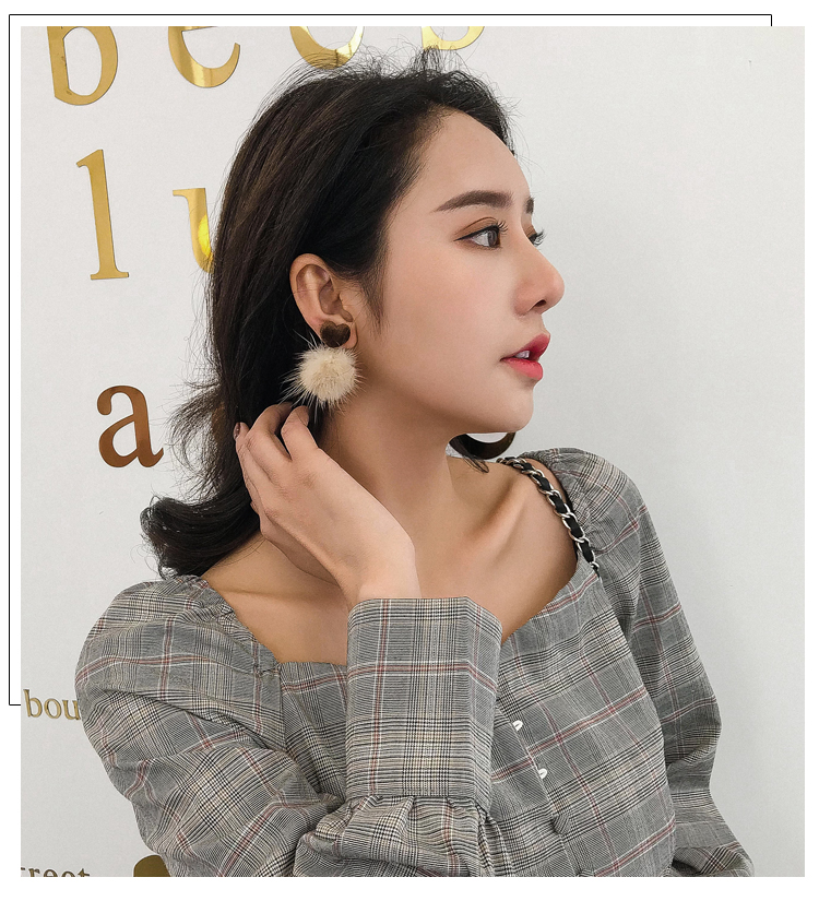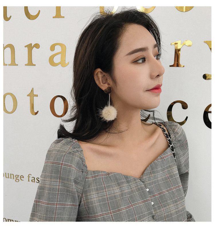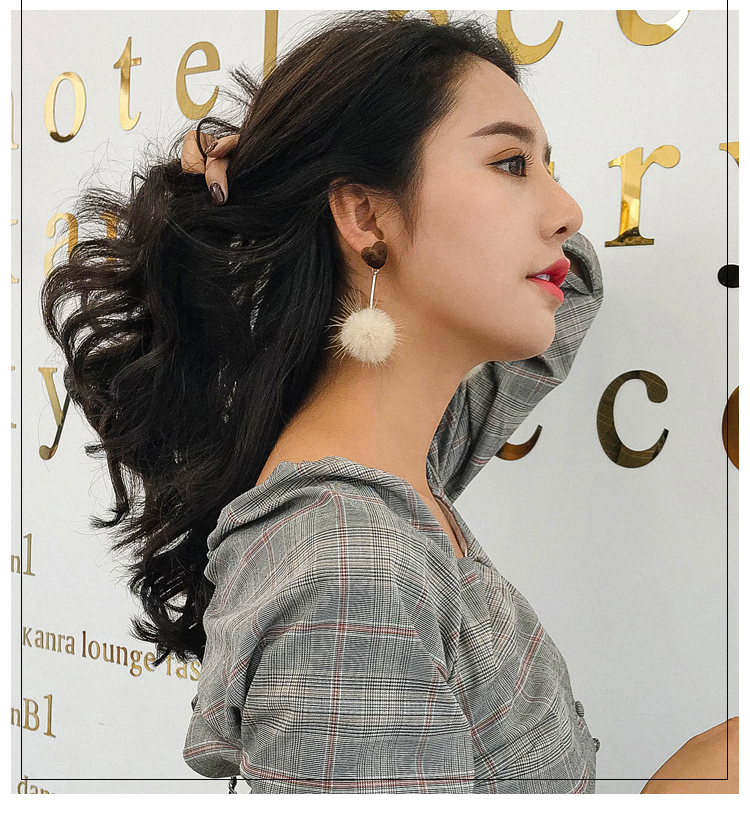 2019秋冬新款愛心毛絨毛球耳環毛毛球韓國氣質長款耳墜無耳洞耳夾1入