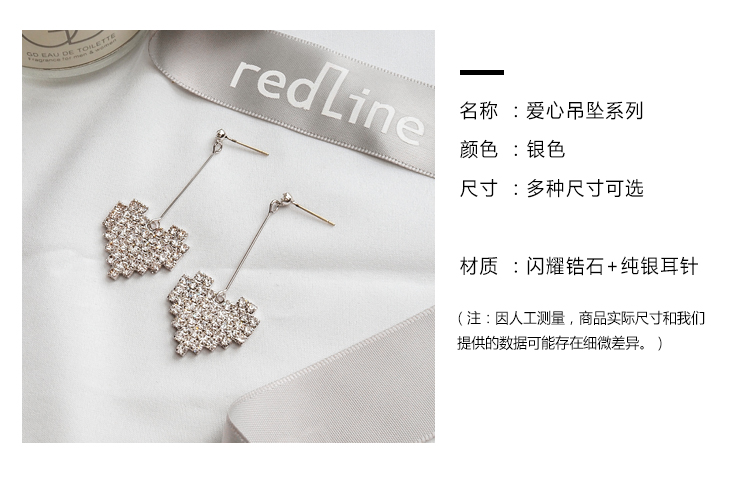 韓國簡約百搭氣質愛心耳墜女2018個性長款吊墜耳環純銀心形耳釘1入