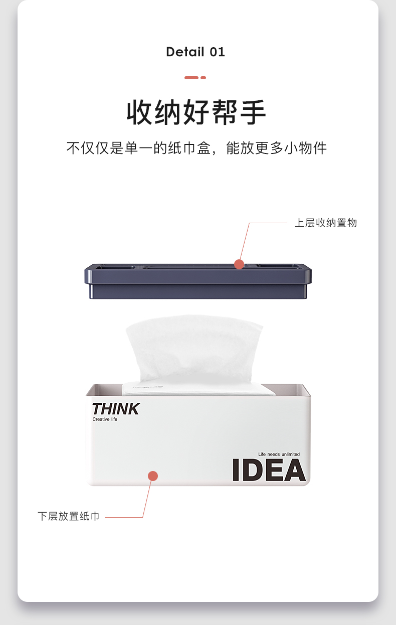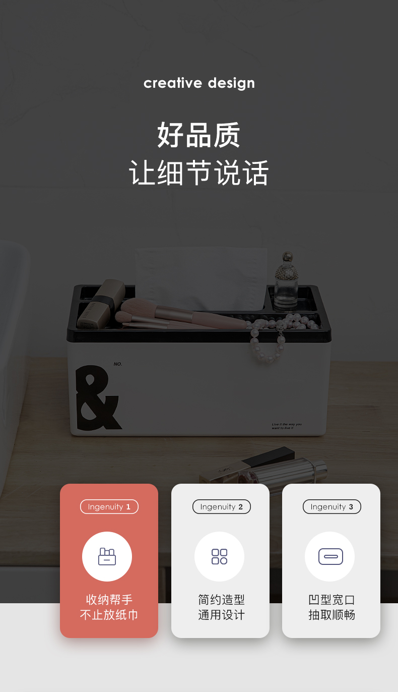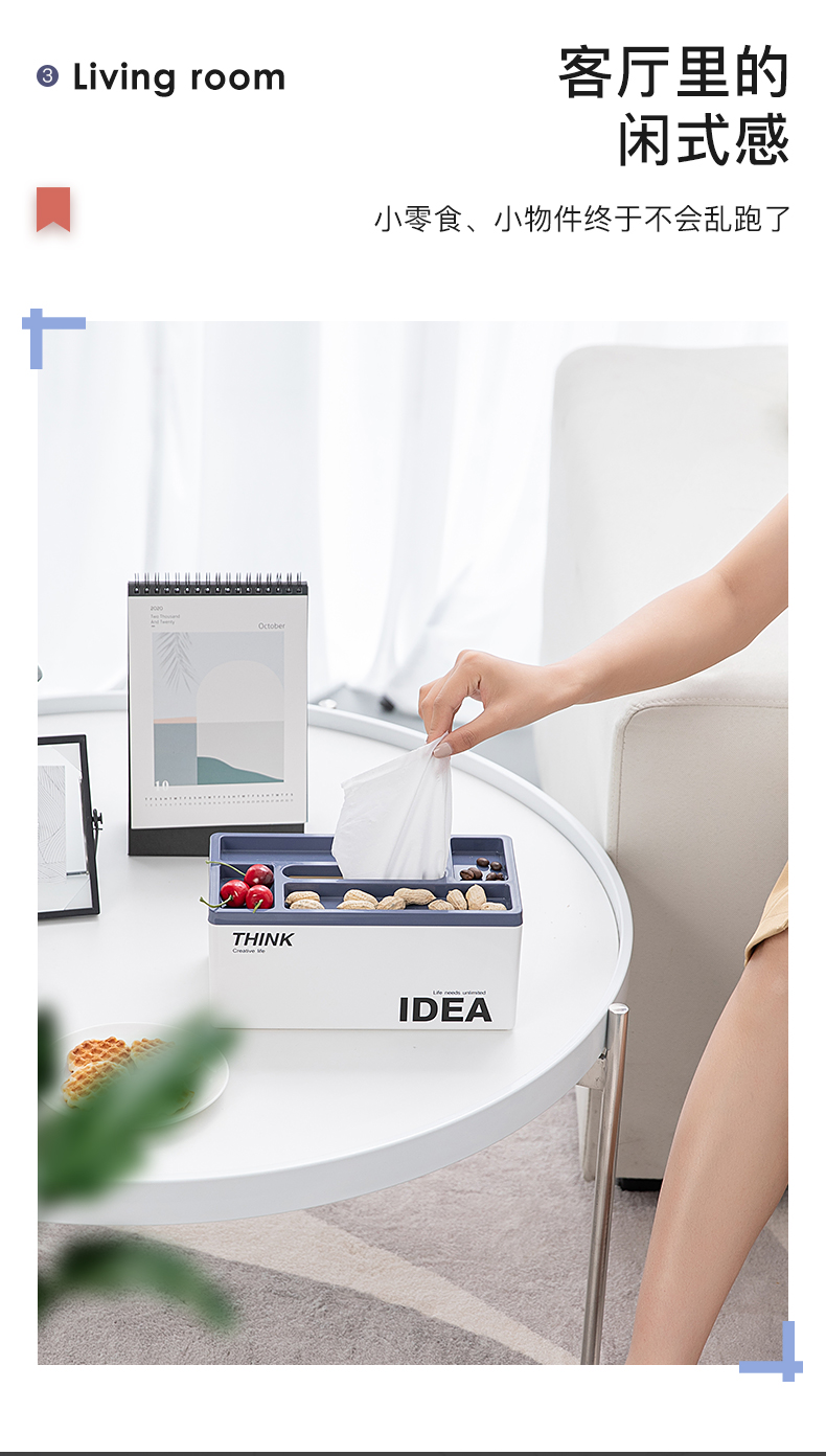 半島良品北歐ins紙巾盒客廳臥室創意多功能桌面辦公室抽紙收納盒1入