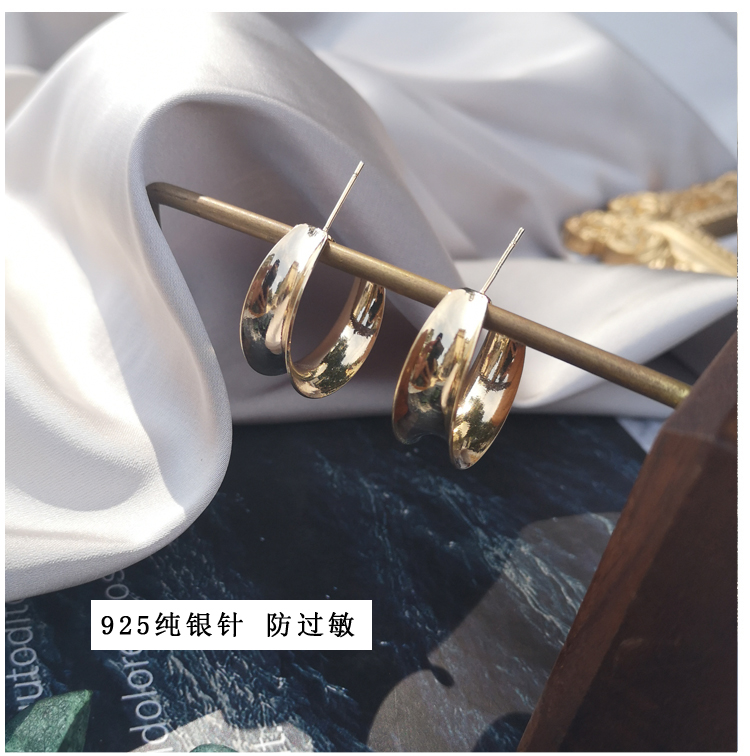 金色小圓圈圓環圈圈耳環女金屬復古港風港味純銀針耳釘2019新款潮1入