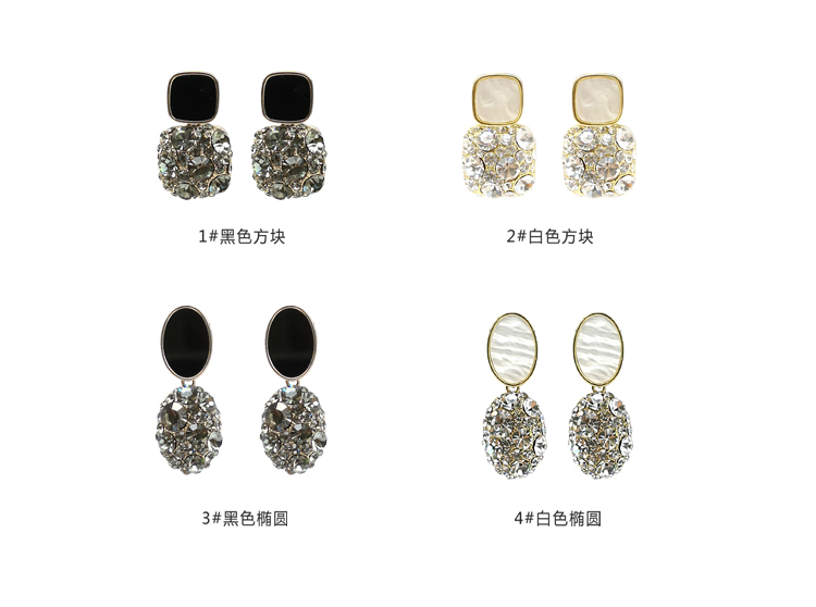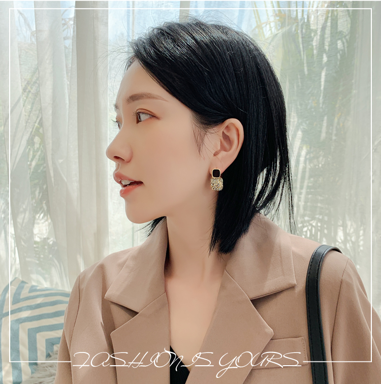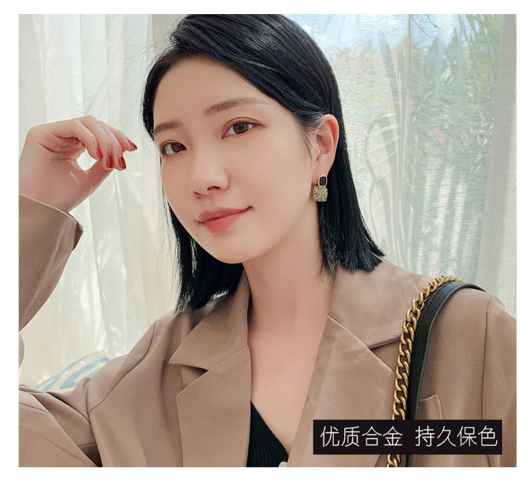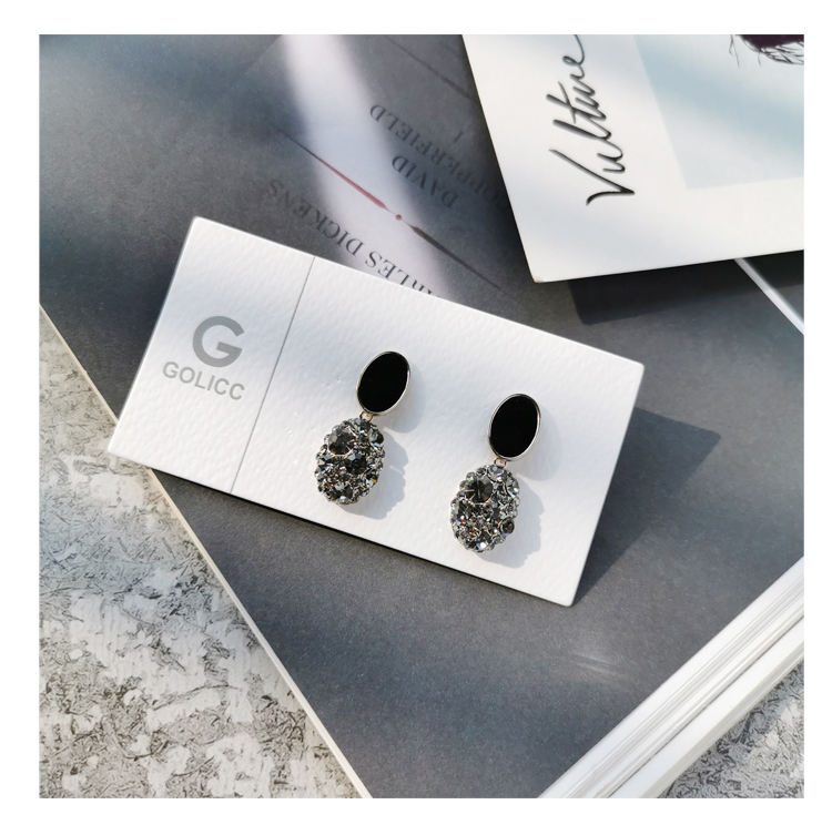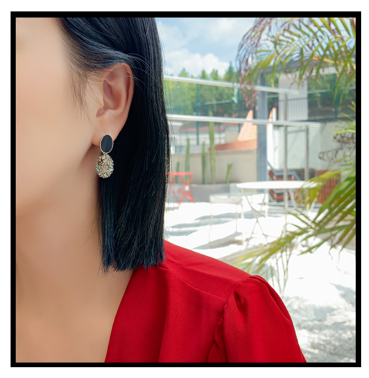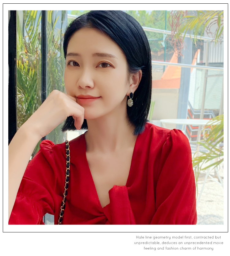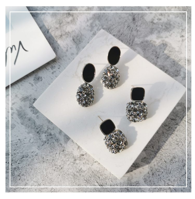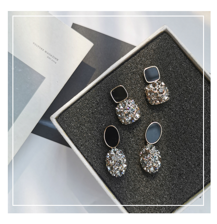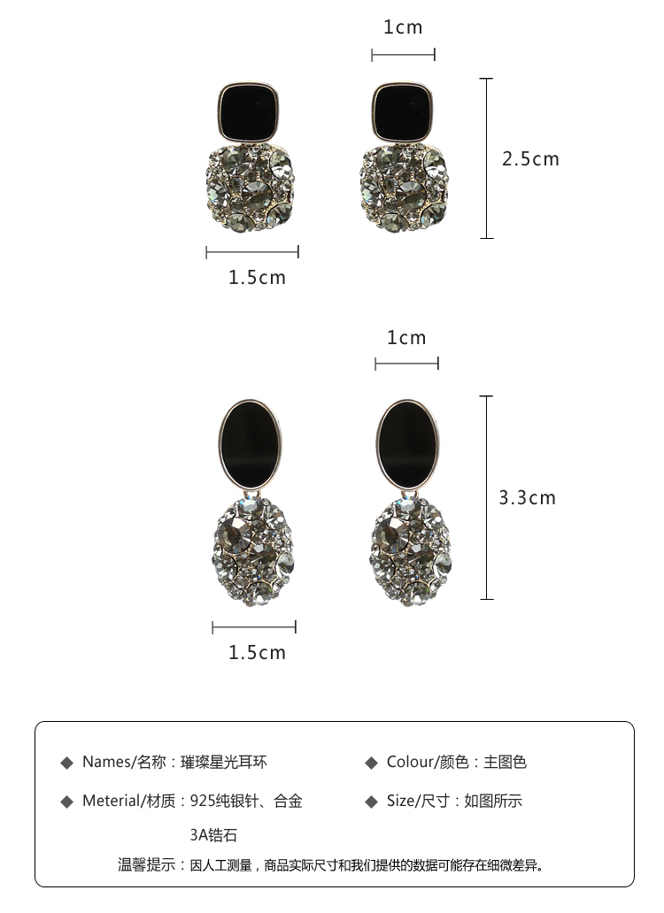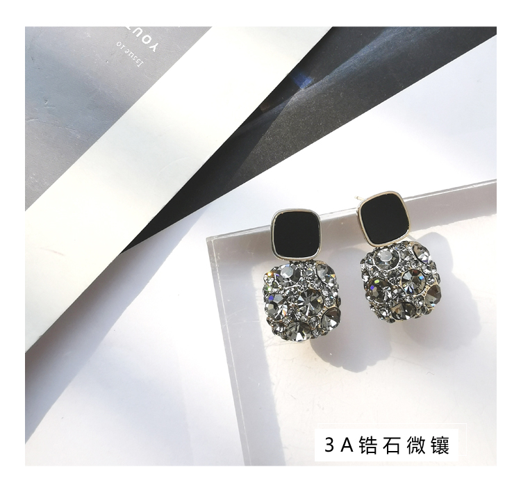 超閃奢華鋯石黑色耳環女純銀防過敏耳釘2019新款潮韓國氣質耳墜1入
