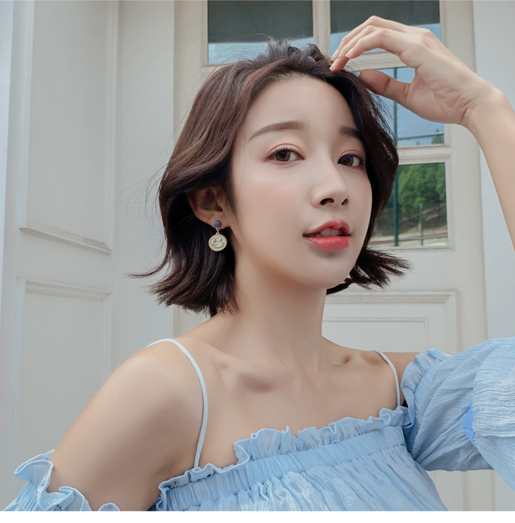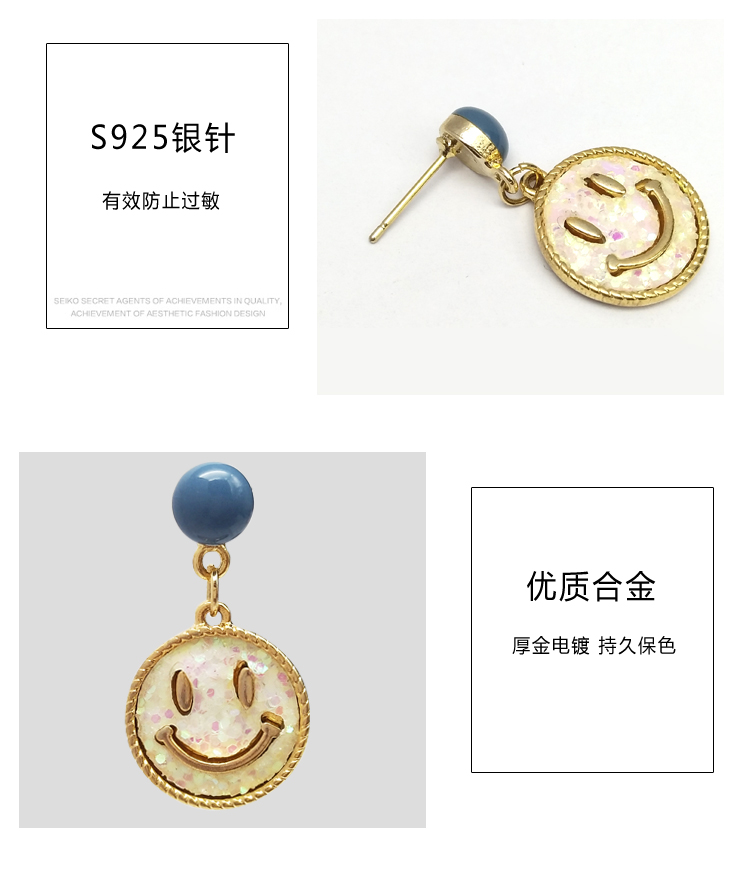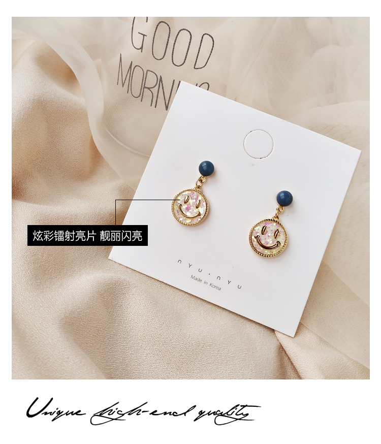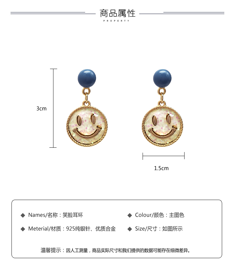 韓國東大門笑臉耳環女小清新少女可愛耳墜2019新款潮純銀耳釘耳飾1入