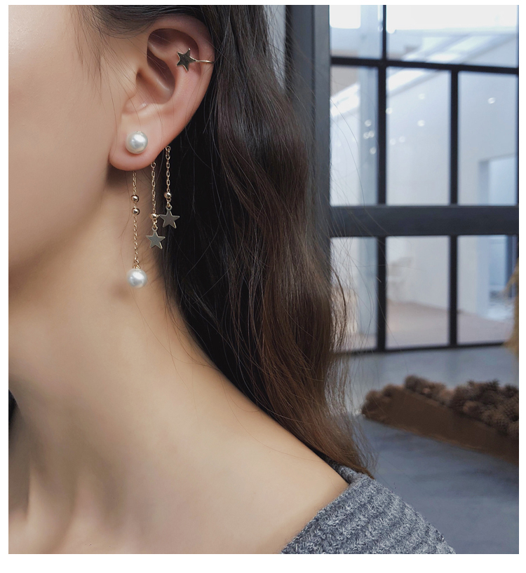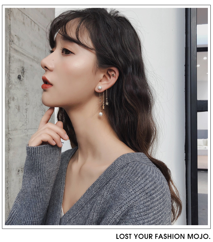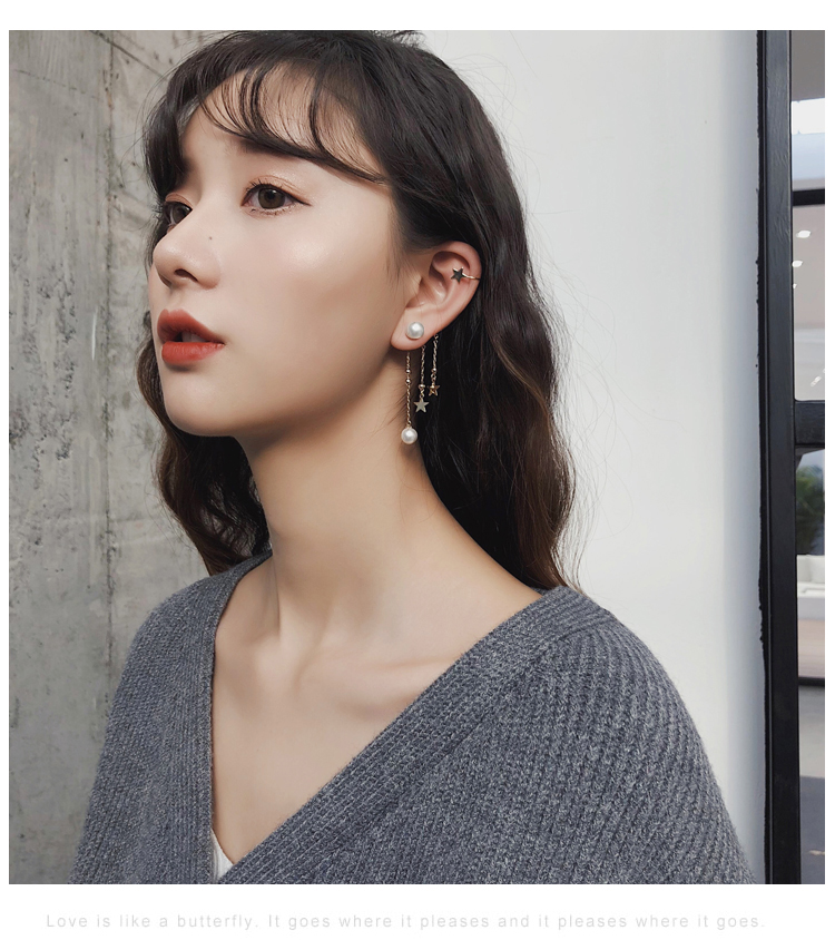 2019新款潮耳環耳骨夾一體式女長款仙氣森系超仙流蘇耳墜耳掛耳夾1入