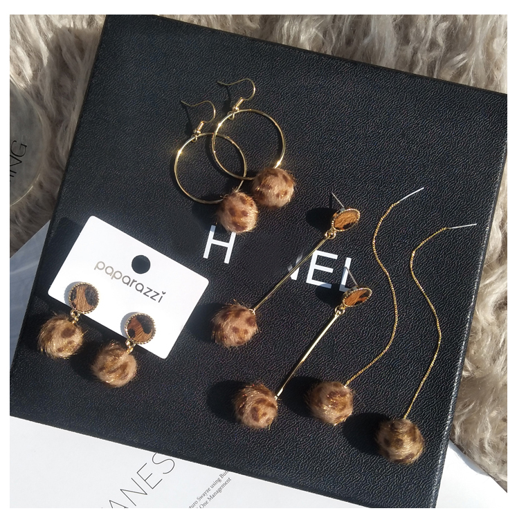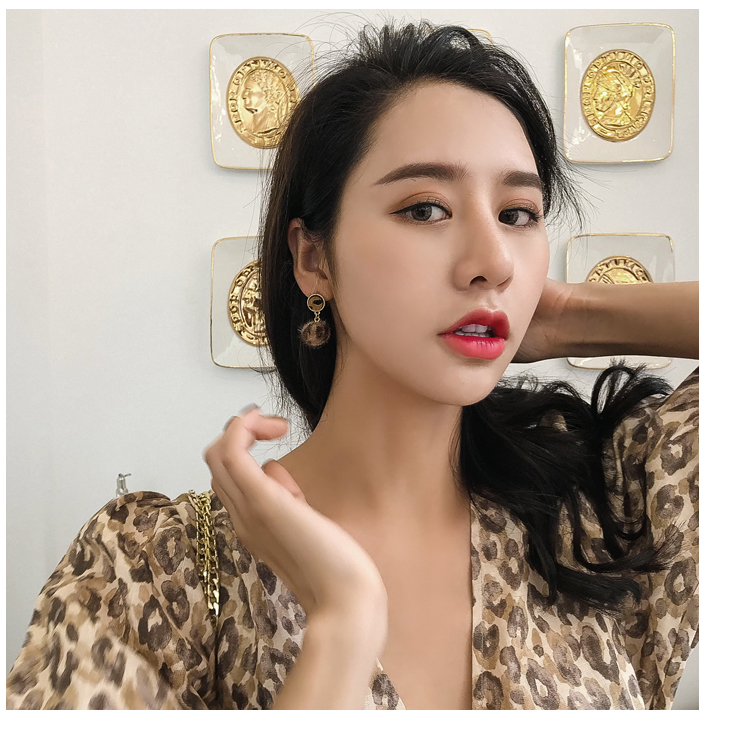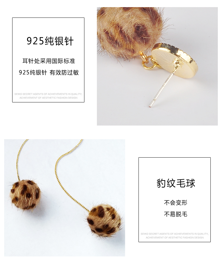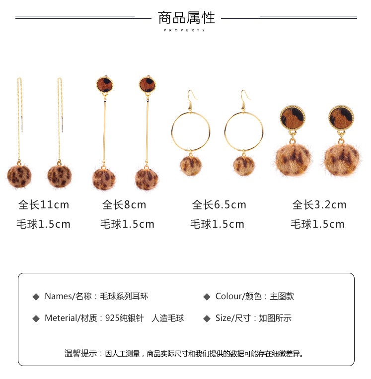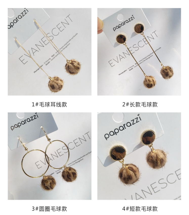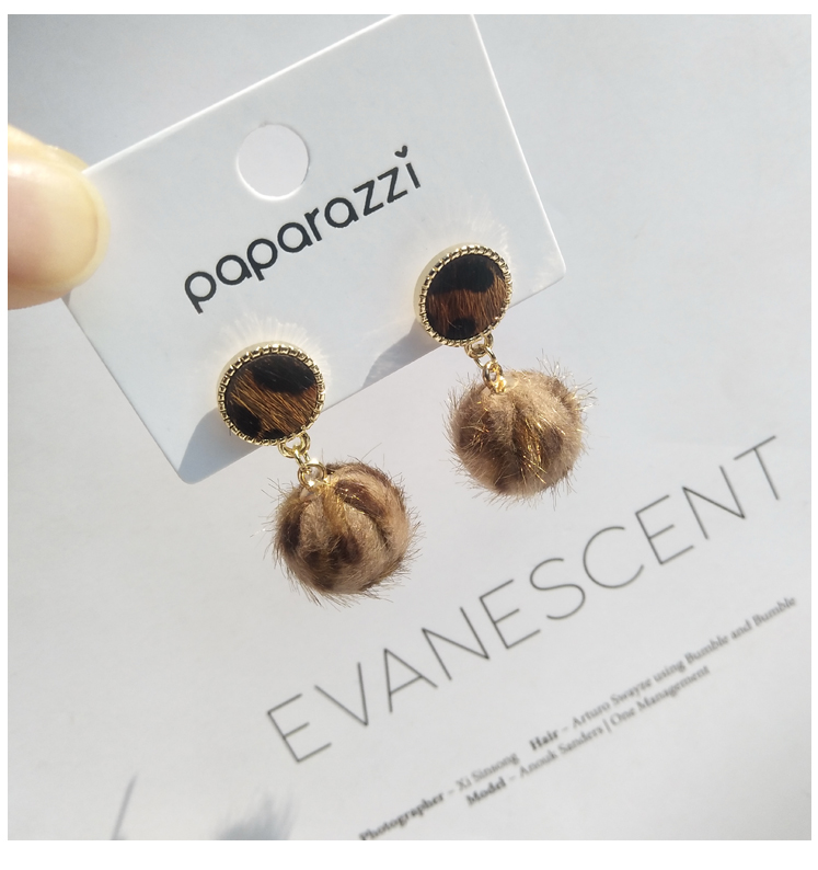 適合冬天的豹紋毛球耳環女2019秋冬新款毛毛球耳墜耳釘毛絨耳飾品1入