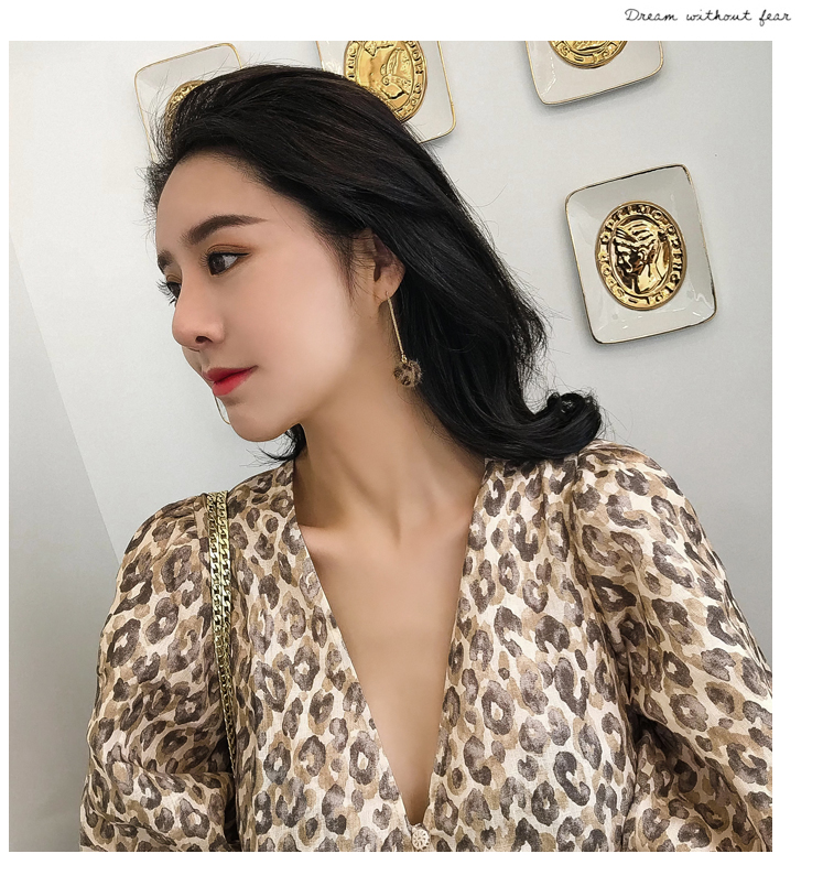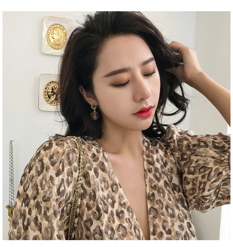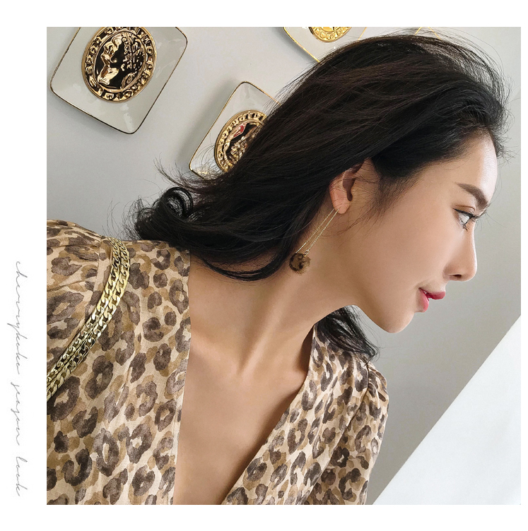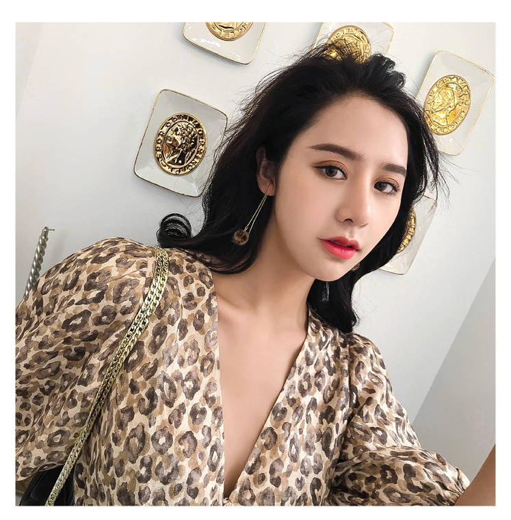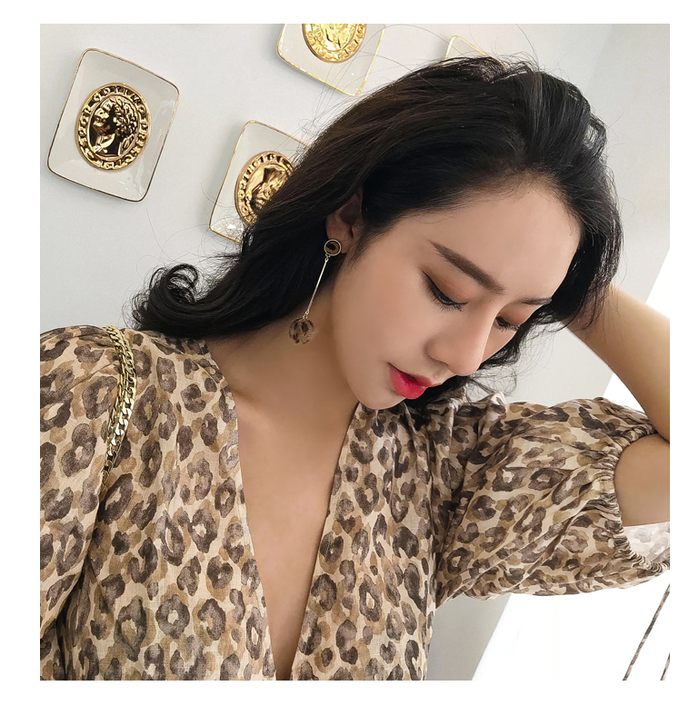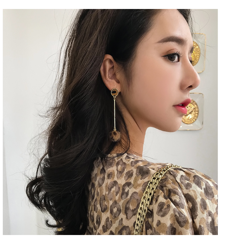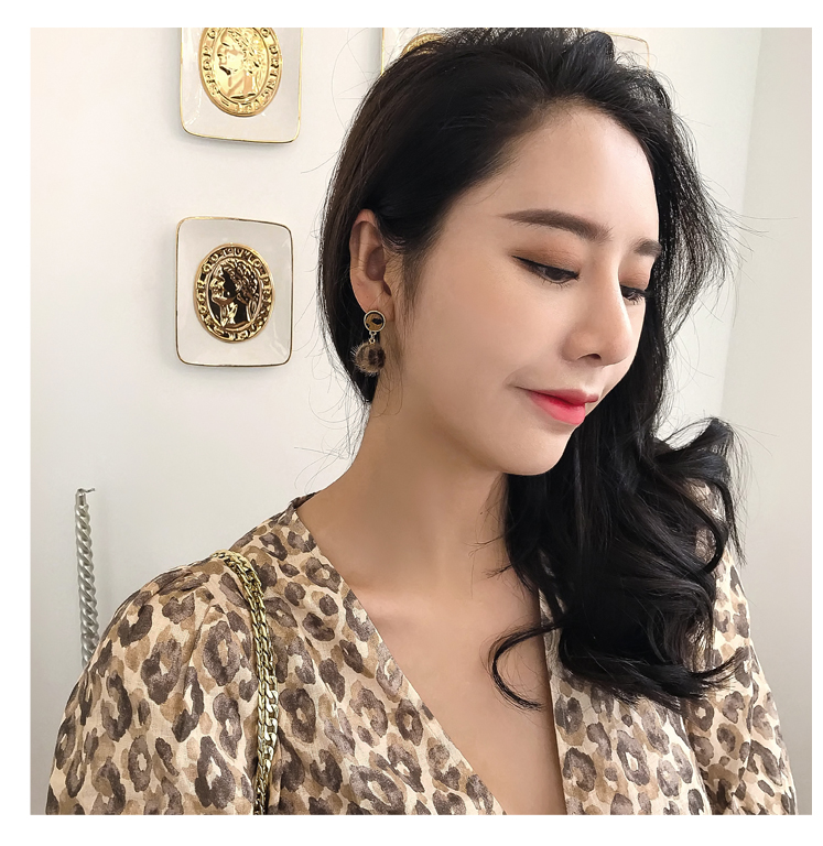 適合冬天的豹紋毛球耳環女2019秋冬新款毛毛球耳墜耳釘毛絨耳飾品1入