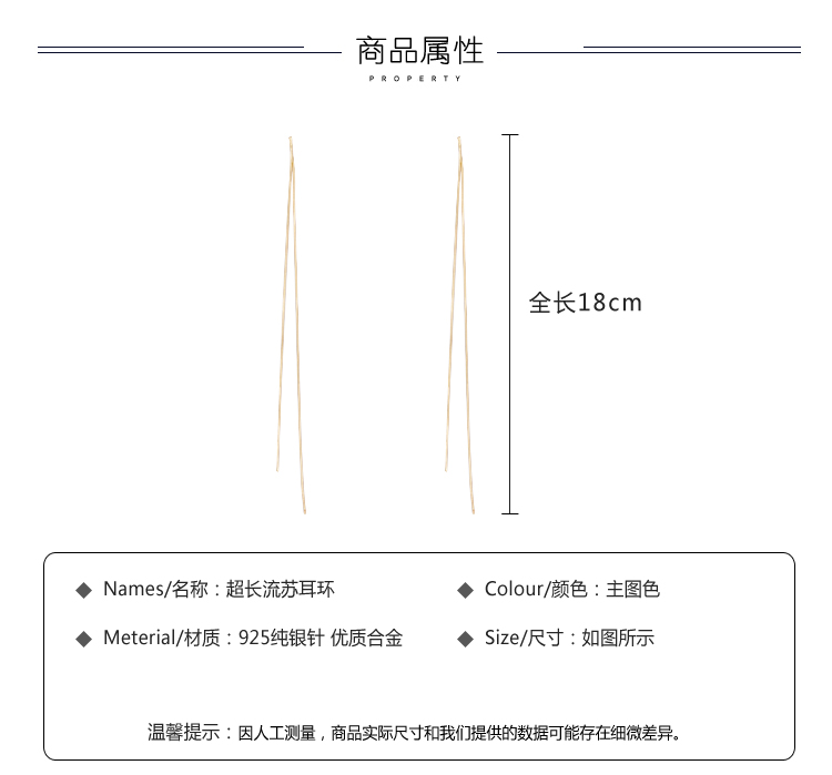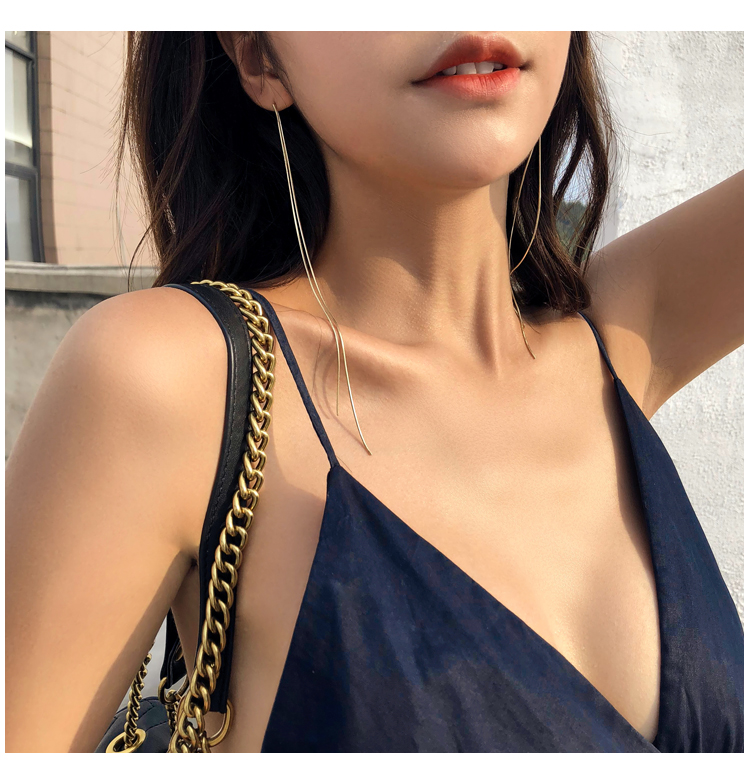 超長流蘇耳環女網紅2019新款潮韓國氣質長款耳墜純銀耳線耳釘耳飾1入
