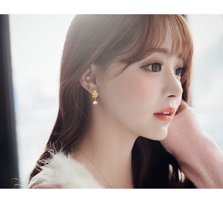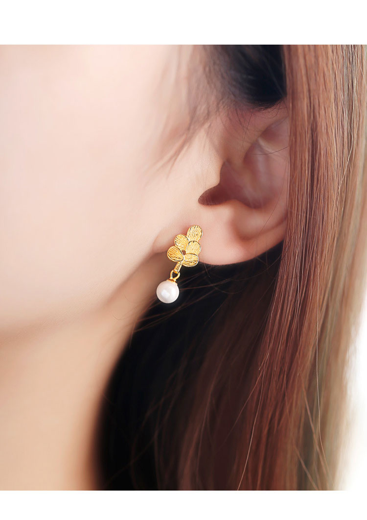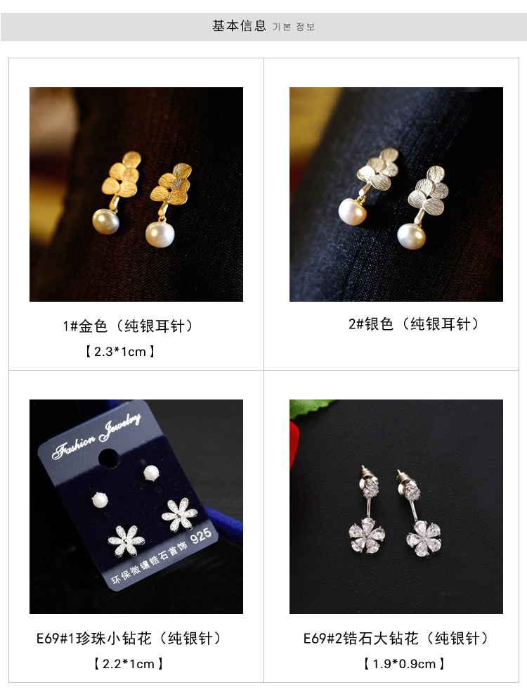 韓國氣質長款吊墜珍珠花朵耳環耳墜純銀簡約清新小耳釘女防過敏1入