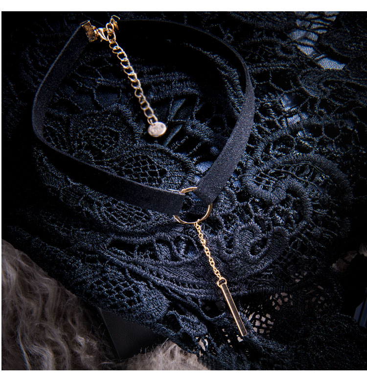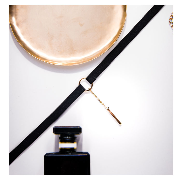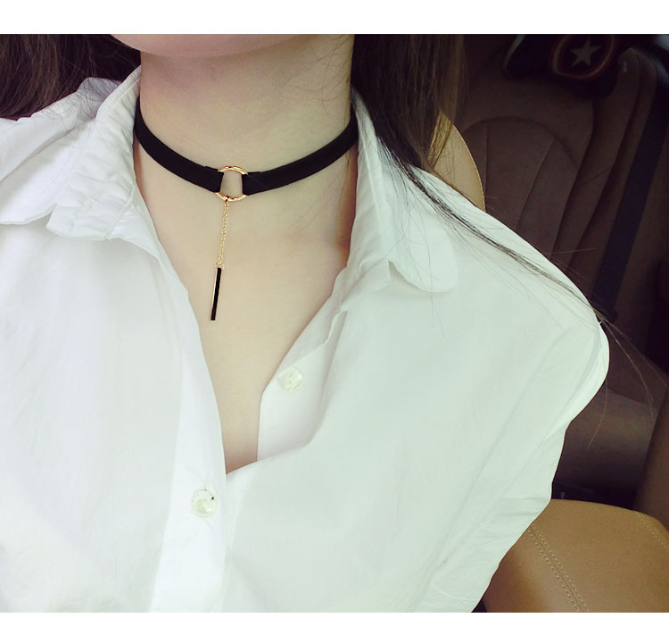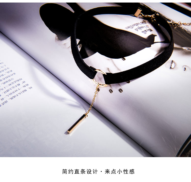 韓國黑色簡約短款頸帶脖子飾品黑繩頸鏈chocker項圈項鏈鎖骨鏈女1入