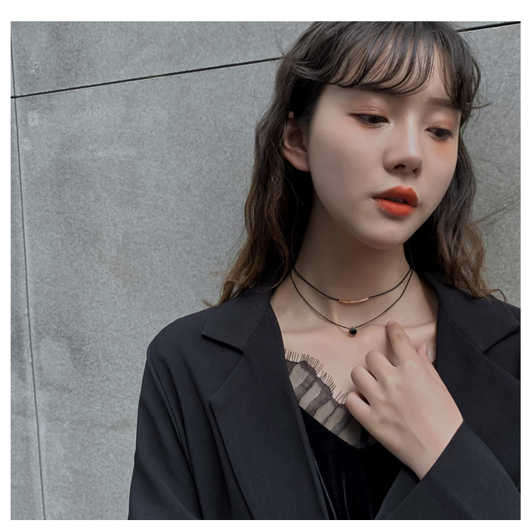 雙層項鏈女仙氣鎖骨鏈chocker頸鏈項圈高級感法式短款頸帶網紅潮1入