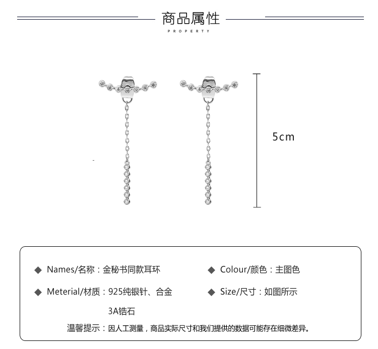 金秘書同款耳環女一款兩戴韓國氣質超仙百搭個性長款耳墜耳飾耳線1入