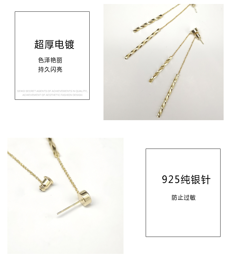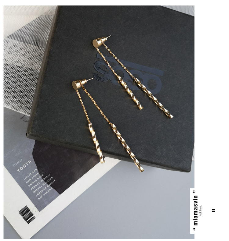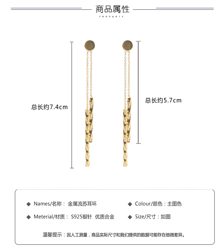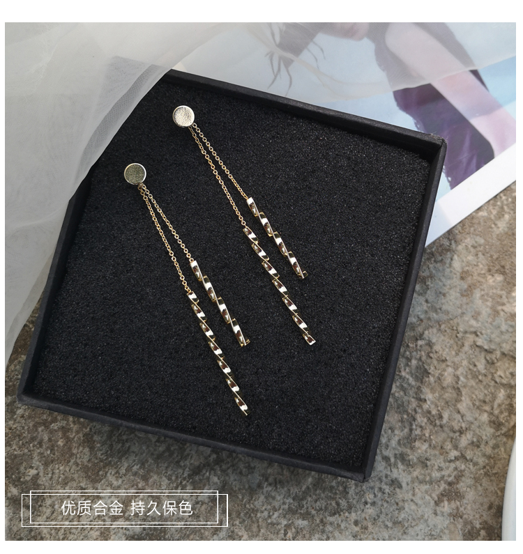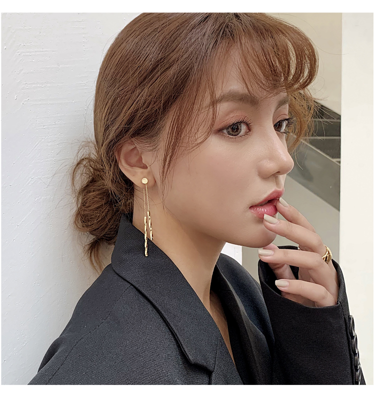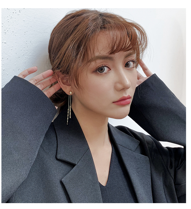 金屬流蘇耳環女2019新款潮長款氣質耳墜秋冬百搭高級感圓臉耳飾1入