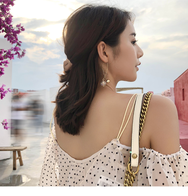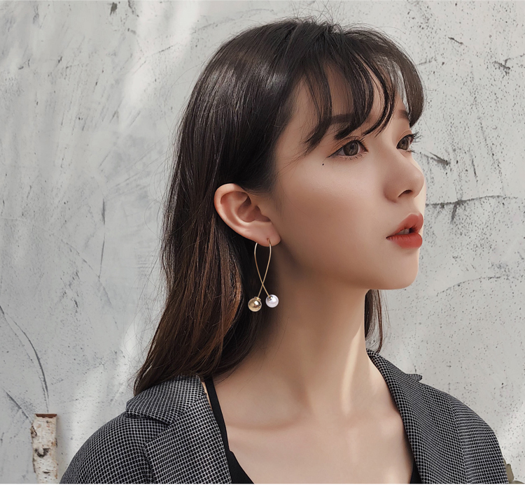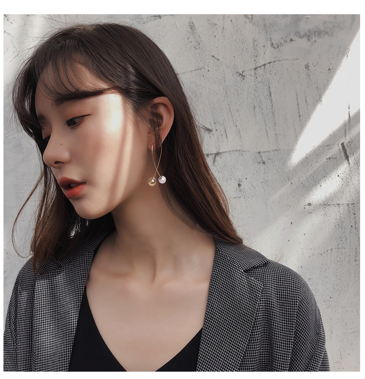 2019新款潮耳環女夸張時尚個性大氣顯臉瘦珍珠耳墜長款氣質耳墜1入