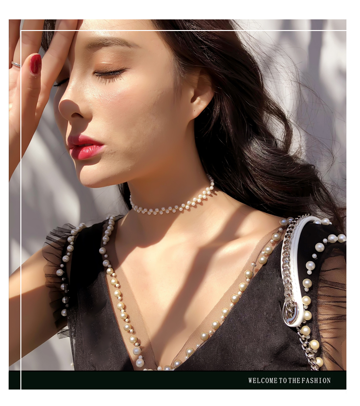 韓國黑色性感頸帶女短款鎖骨鏈頸鏈網紅項鏈頸圈珍珠項圈chocker1入