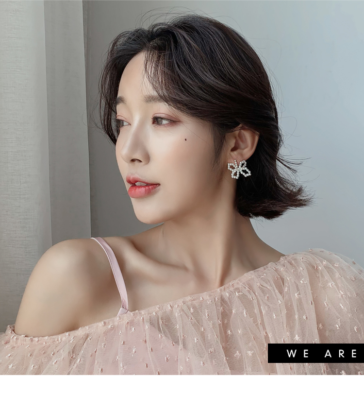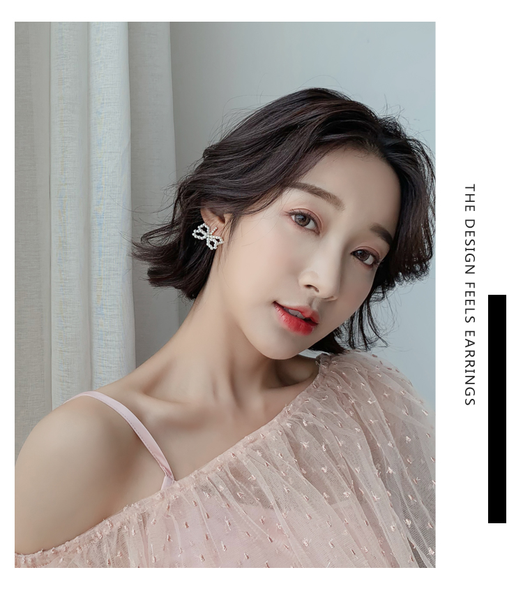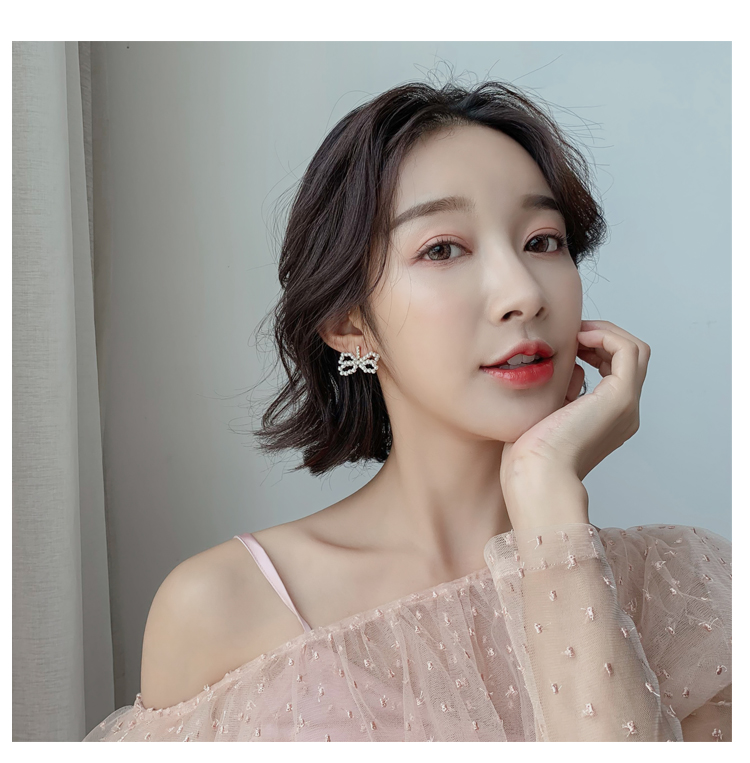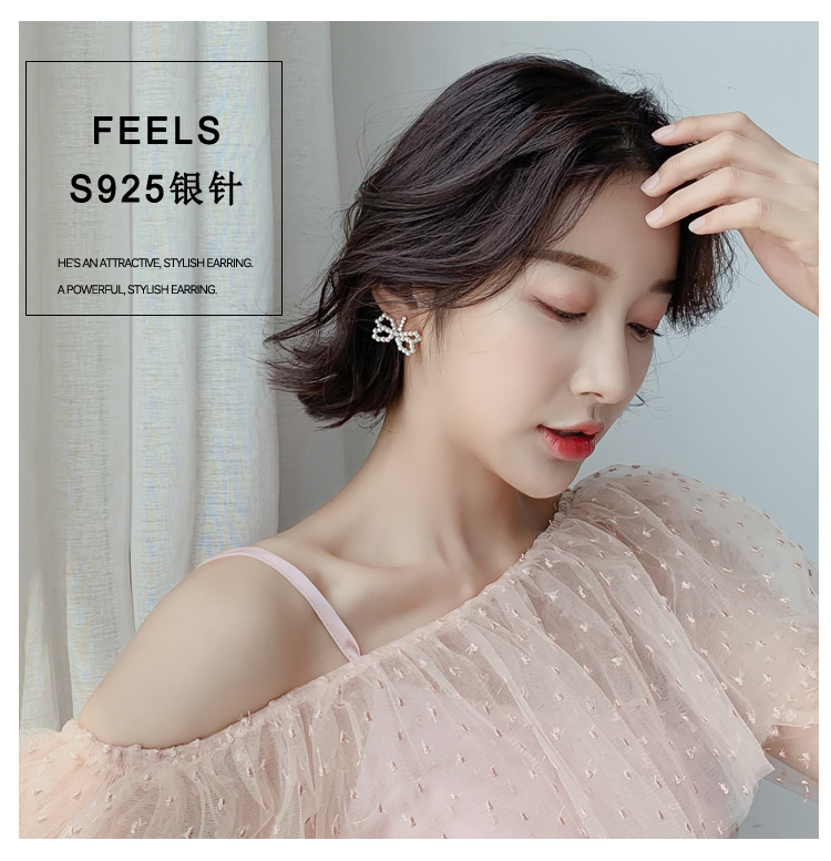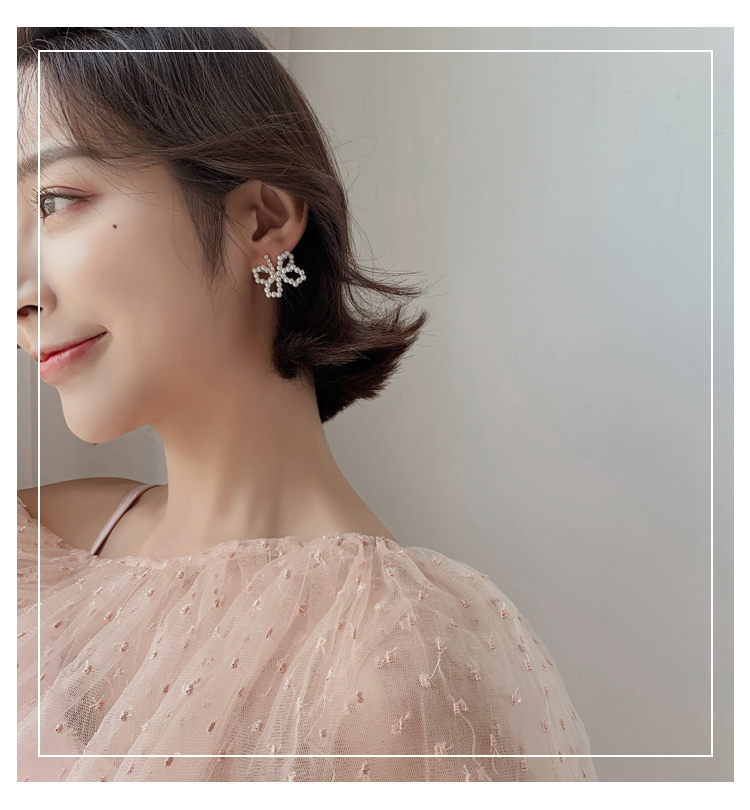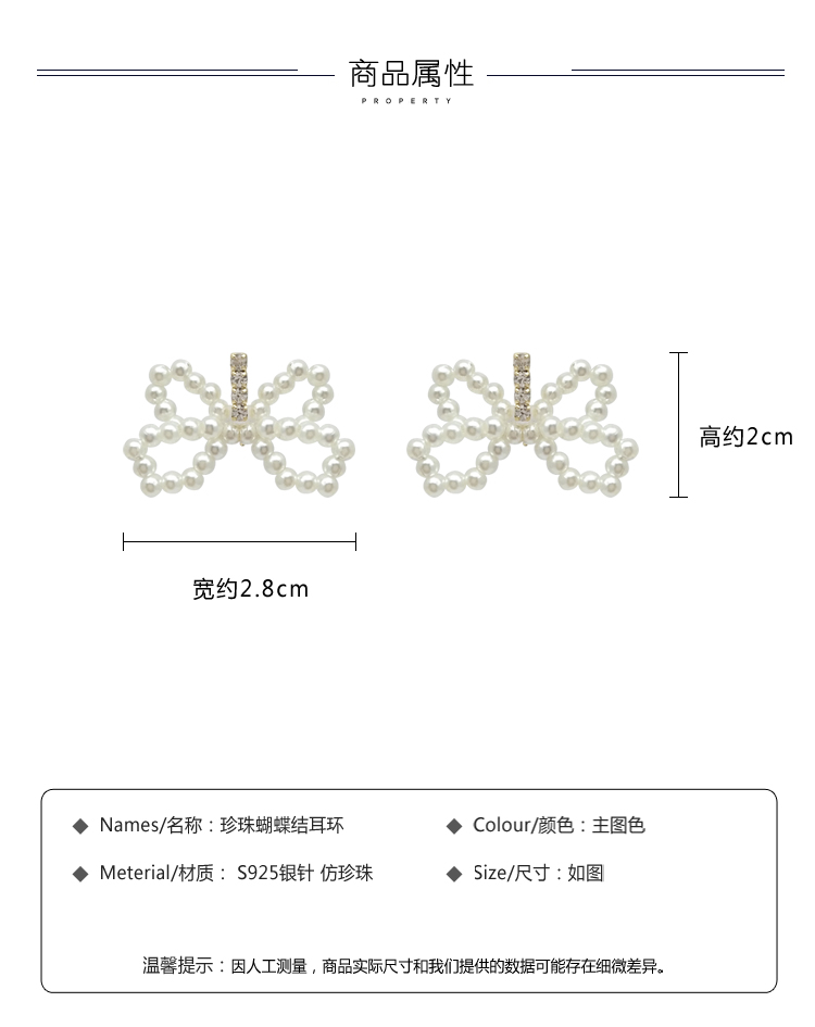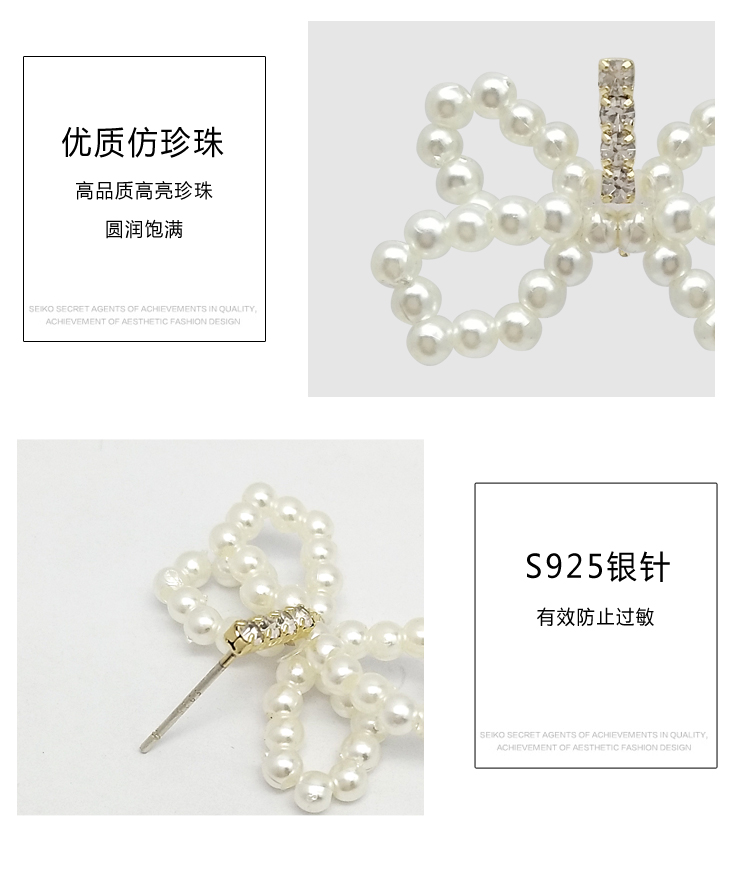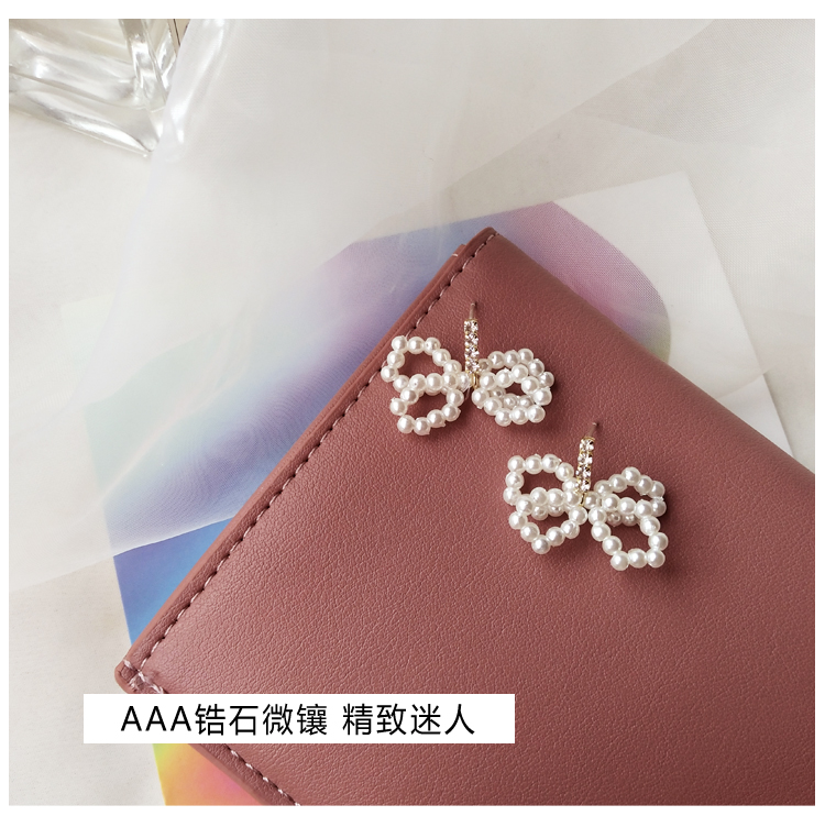 2019新款潮珍珠蝴蝶結耳環設計感超仙精致小耳墜純銀耳釘耳飾品1入