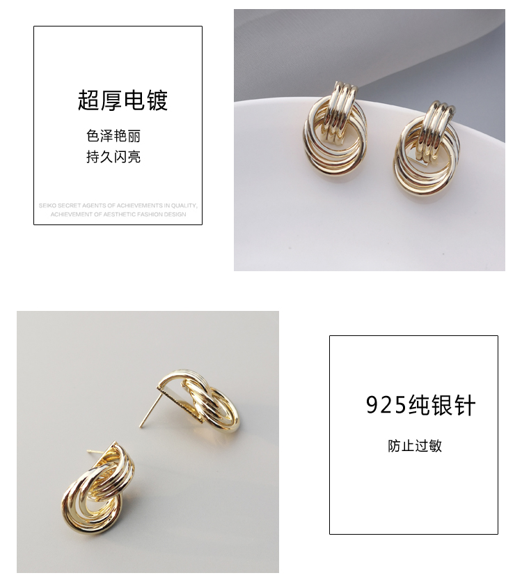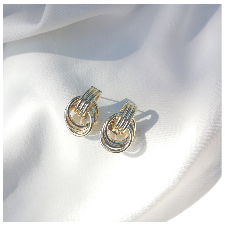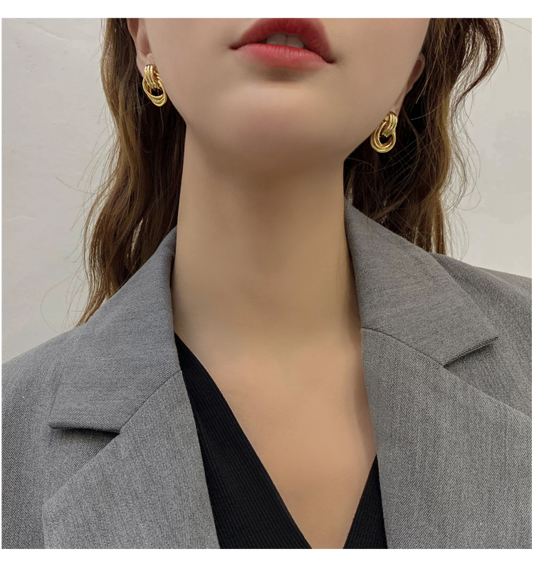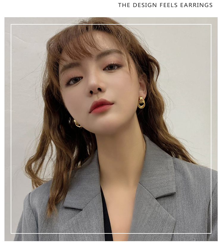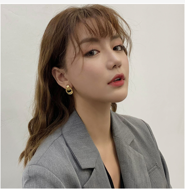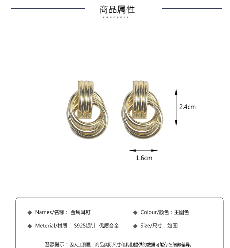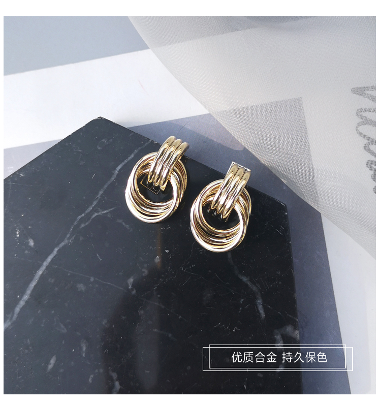 高級感復古港風金屬耳釘女2019新款潮網紅時尚氣質耳環冷淡風耳飾1入