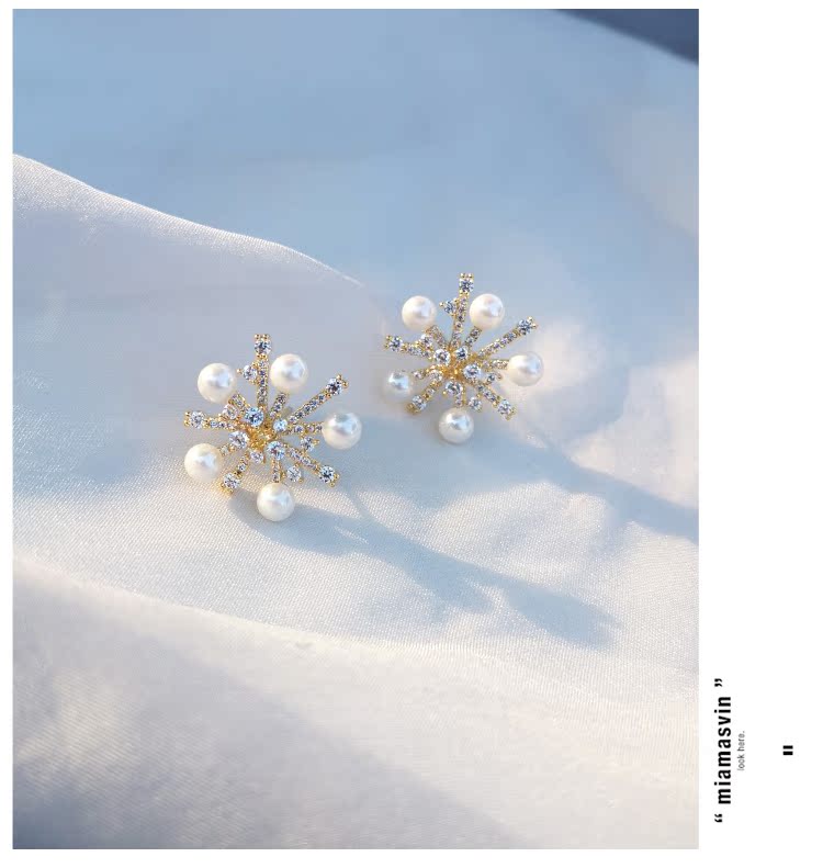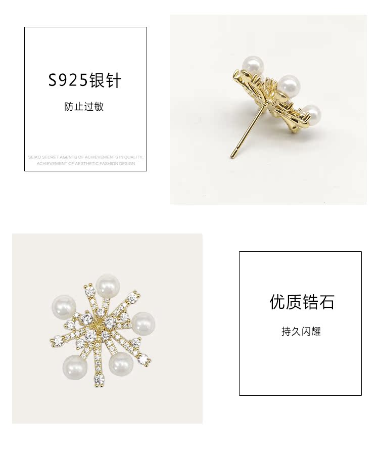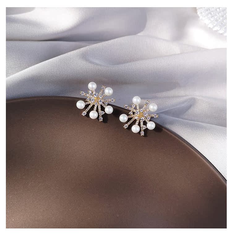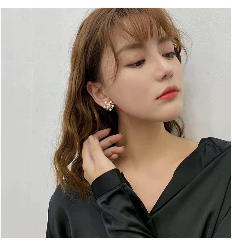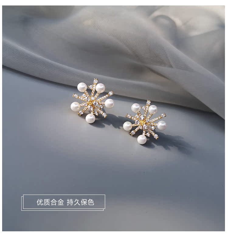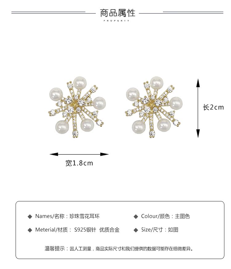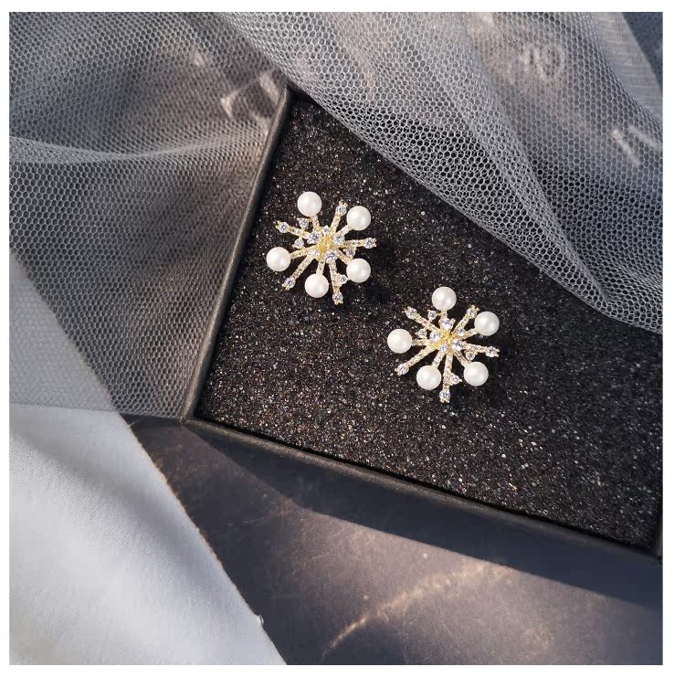 適合冬天的雪花耳環女2019新款潮網紅氣質高級感純銀耳釘秋冬耳飾1入