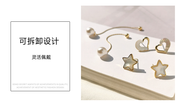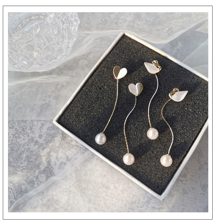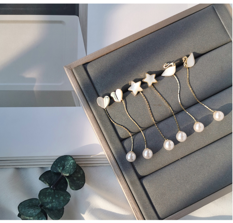 2019新款潮耳環愛心星星五角星天鵝耳釘長款珍珠耳墜網紅氣質耳飾1入