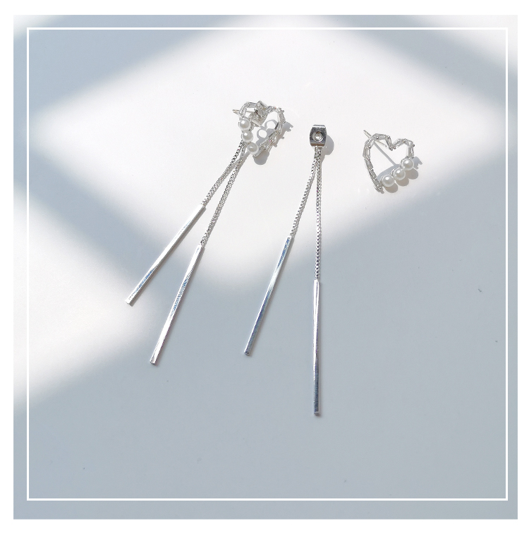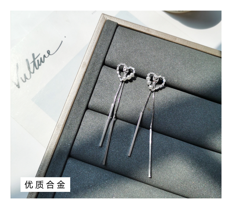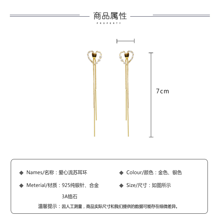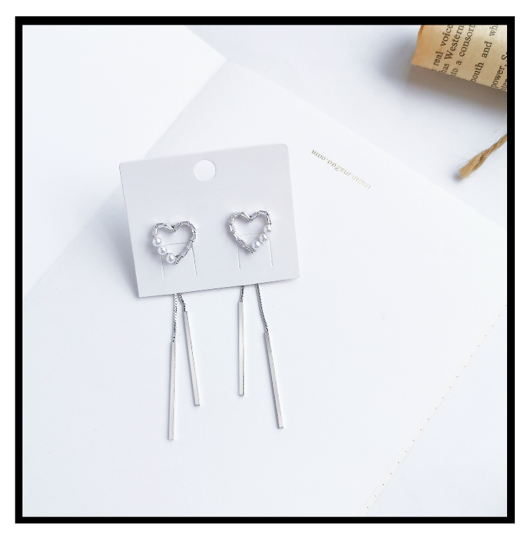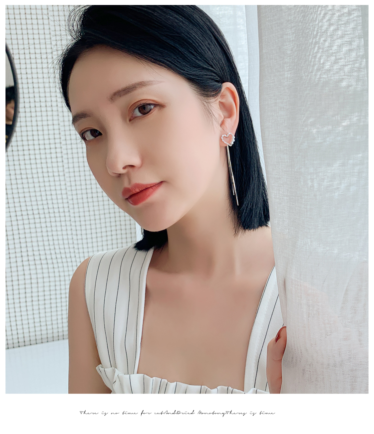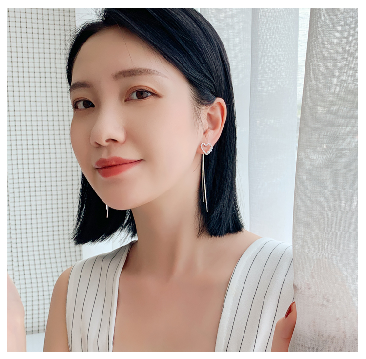2019新款潮心形愛心流蘇耳環女韓國網紅氣質長款超仙耳墜純銀耳釘1入