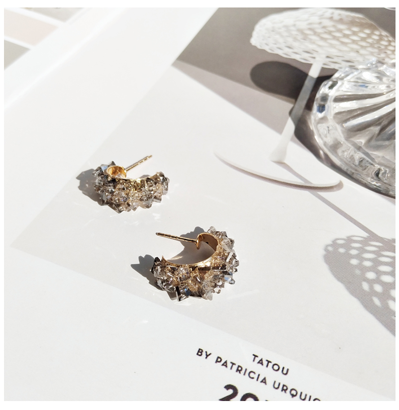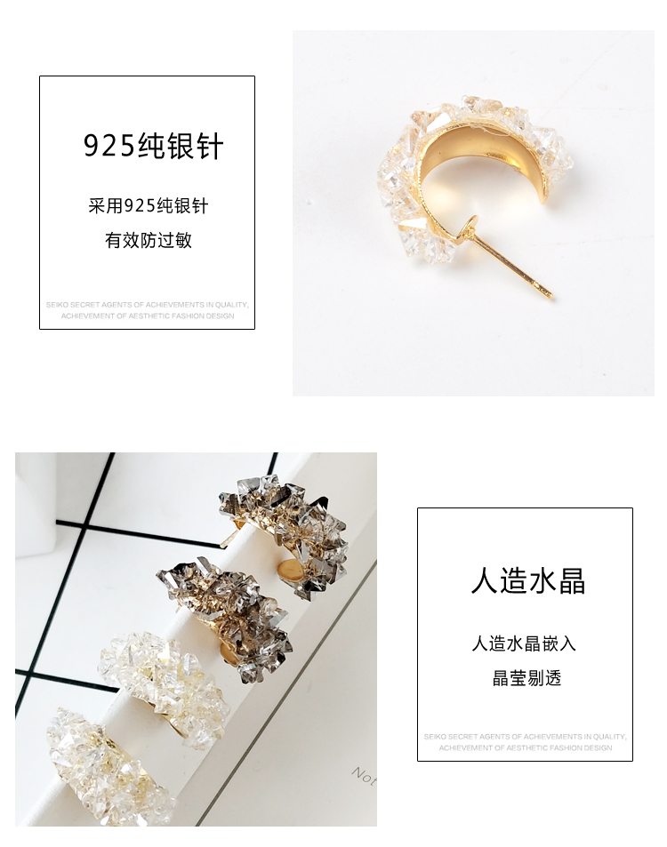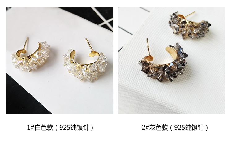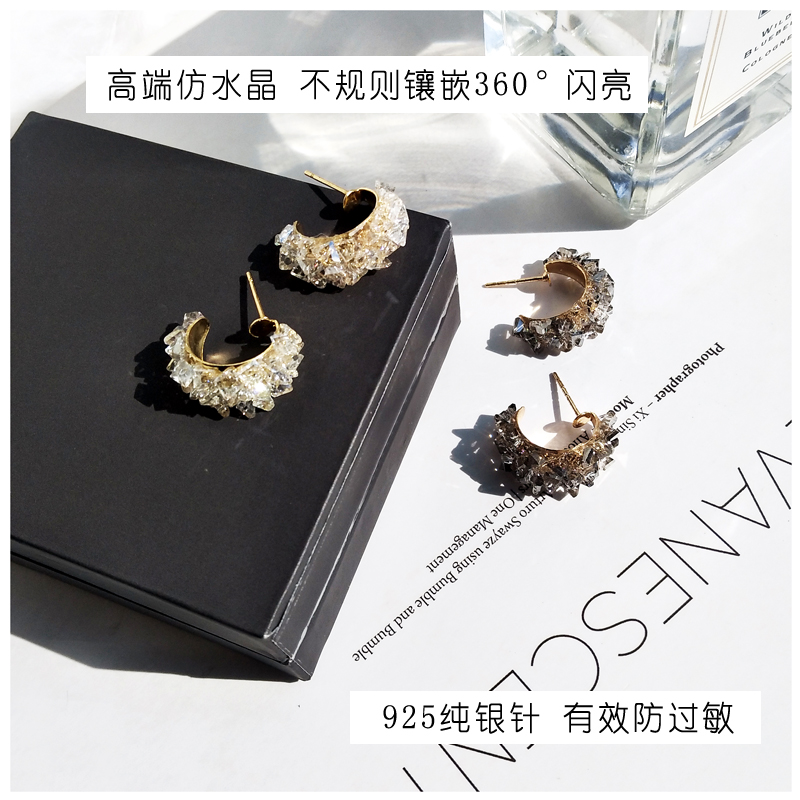 超閃水晶耳環小眾設計精致小耳墜純銀女韓國氣質個性簡約耳釘耳飾1入