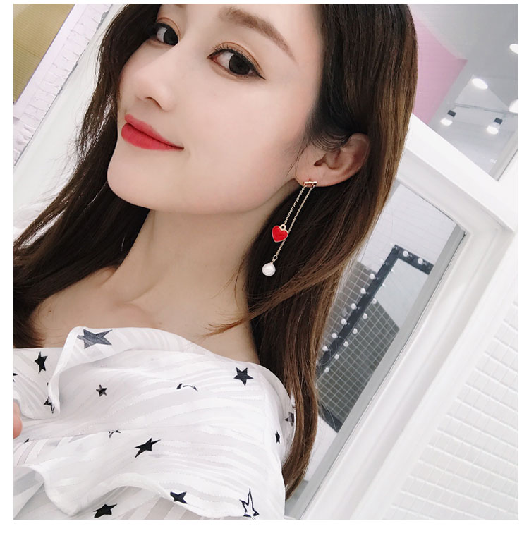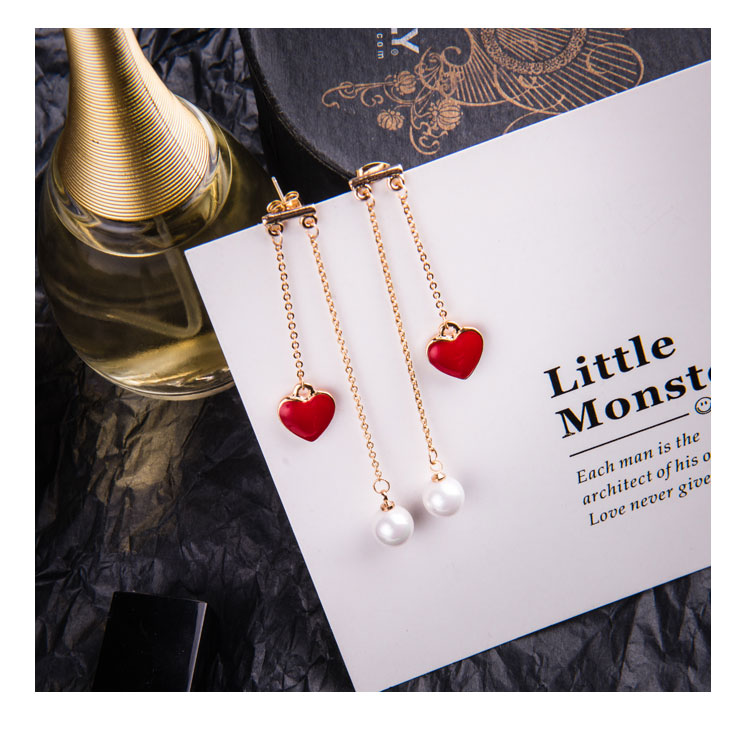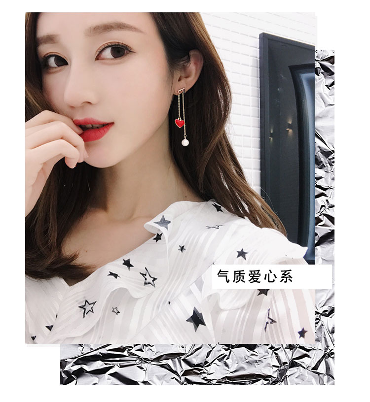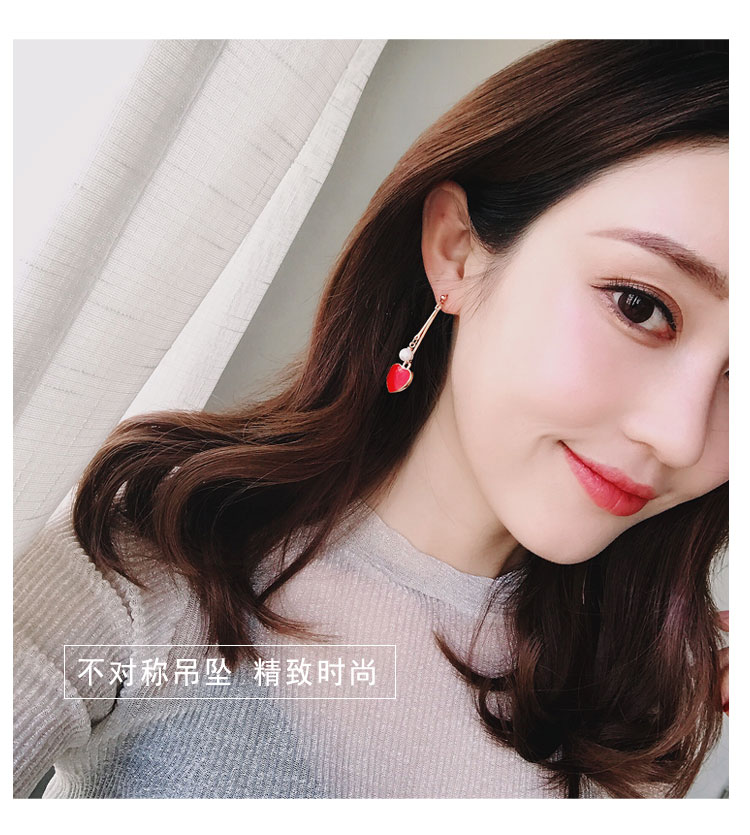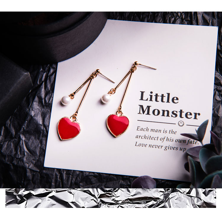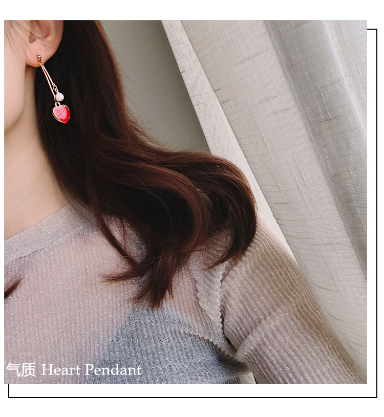 韓國氣質長款紅色新年愛心耳環女吊墜純銀耳墜2018新款潮時尚耳釘1入
