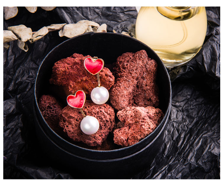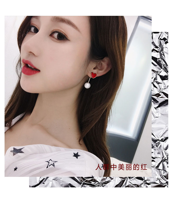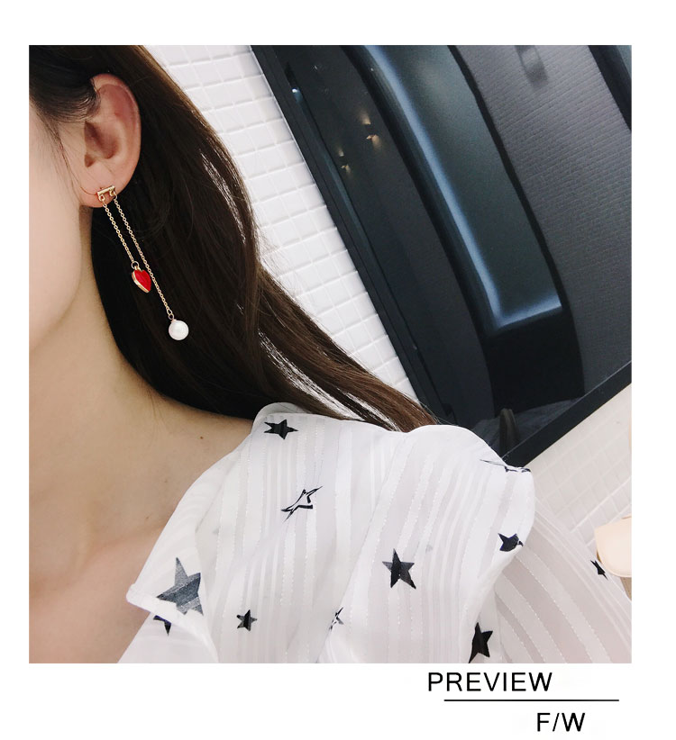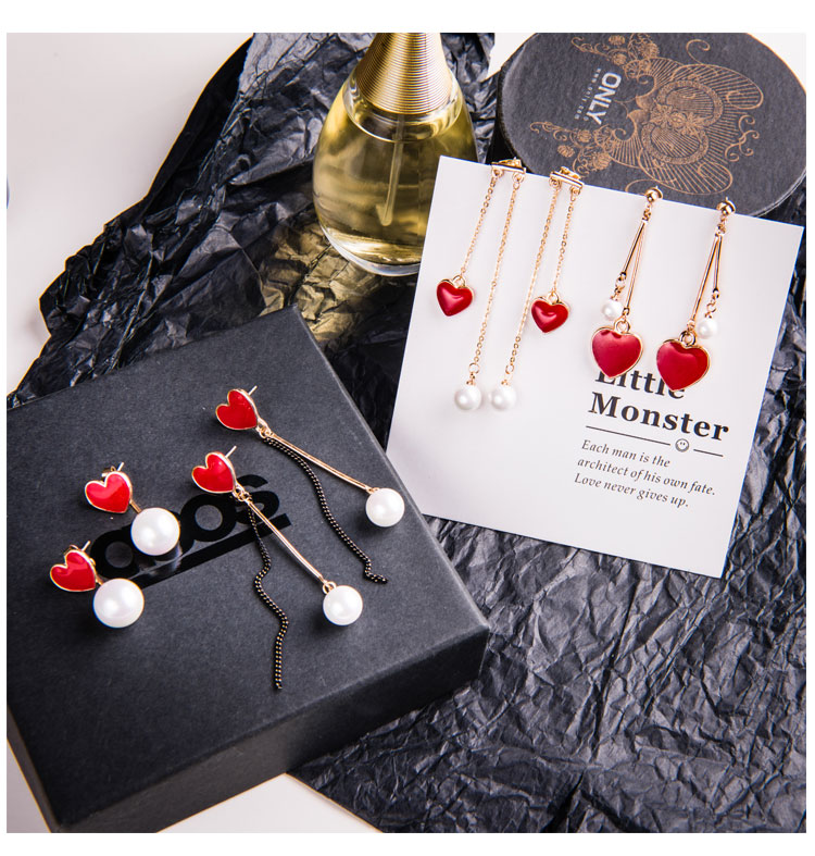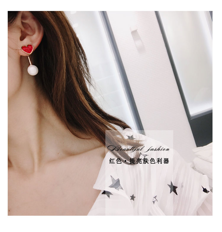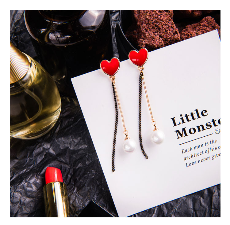 韓國氣質長款紅色新年愛心耳環女吊墜純銀耳墜2018新款潮時尚耳釘1入