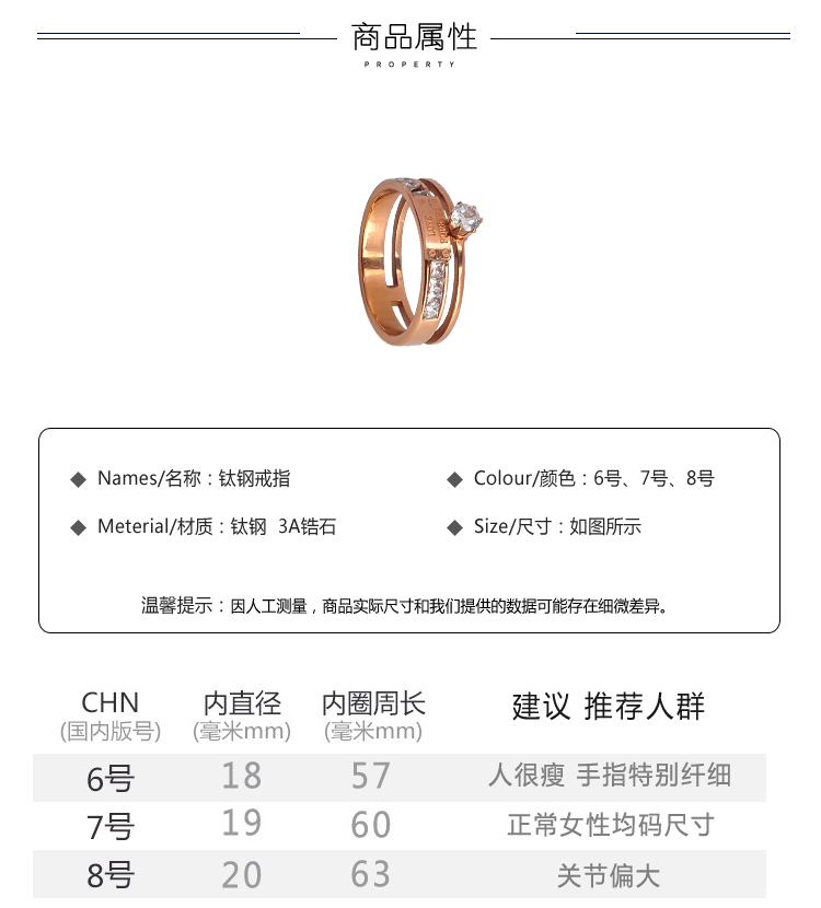 鈦鋼不掉色情侶戒指女食指網紅冷淡風日韓潮人學生個性玫瑰金指環1入