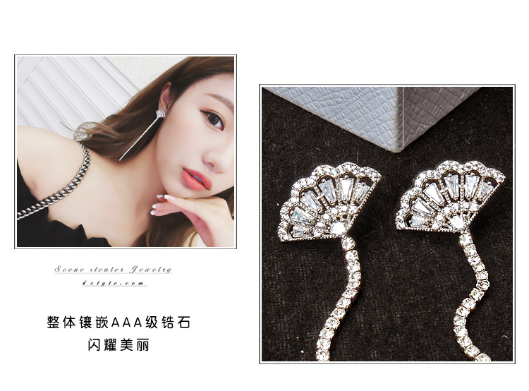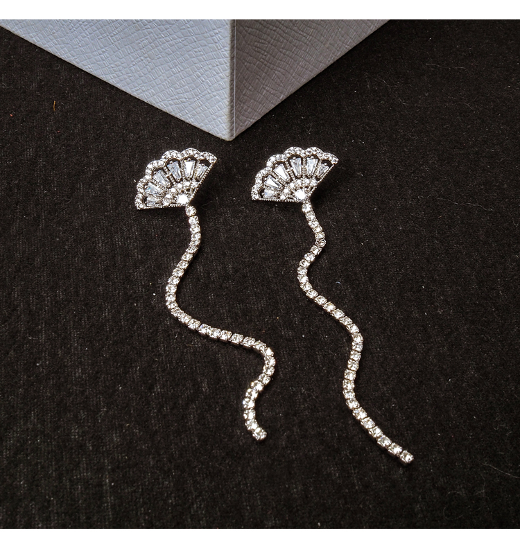 韓國個性氣質超長款流蘇顯臉瘦耳環女性感超仙顯瘦純銀扇形耳釘1入