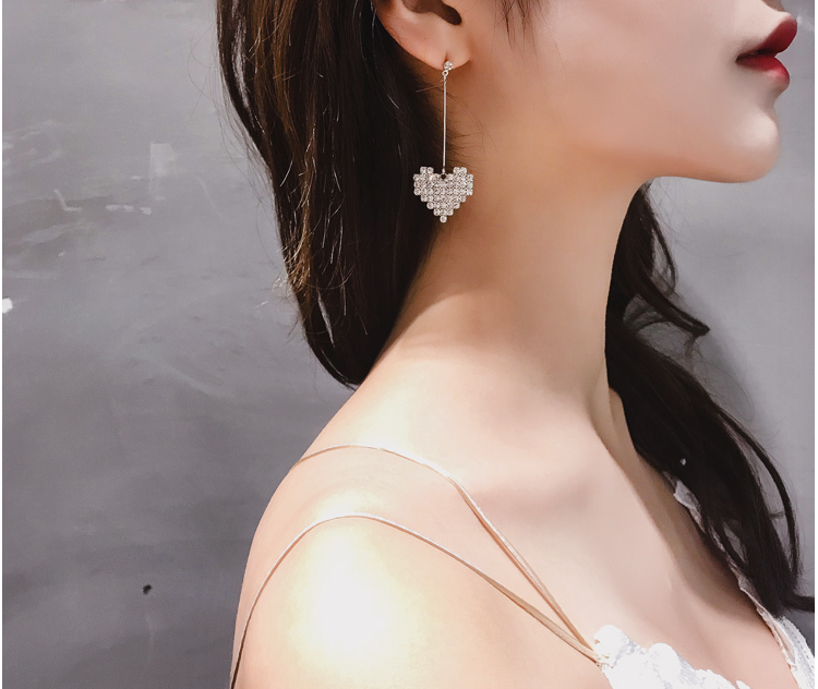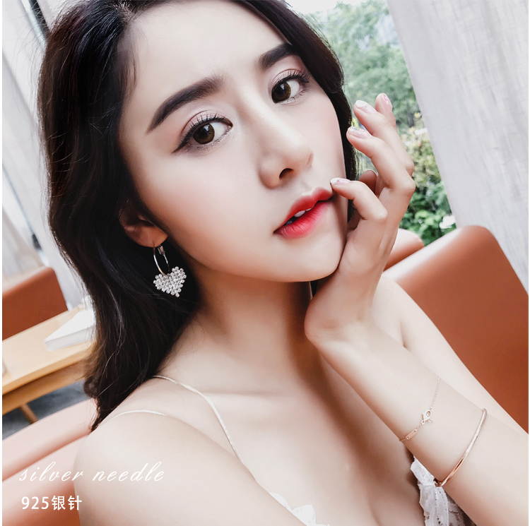 韓國簡約百搭氣質女愛心形耳墜2017網紅同款長款耳環純銀桃心耳釘1入