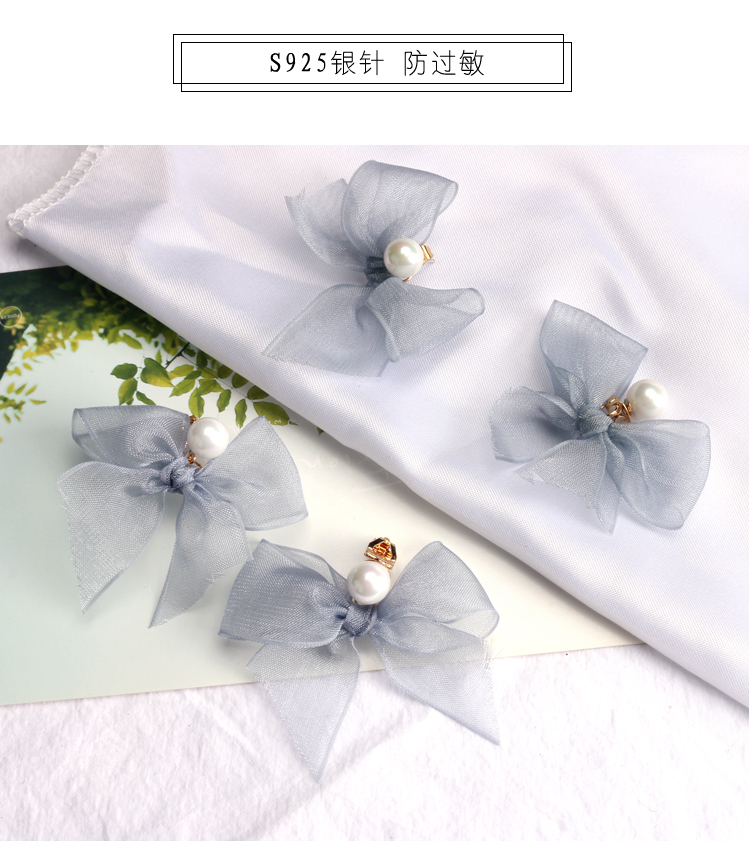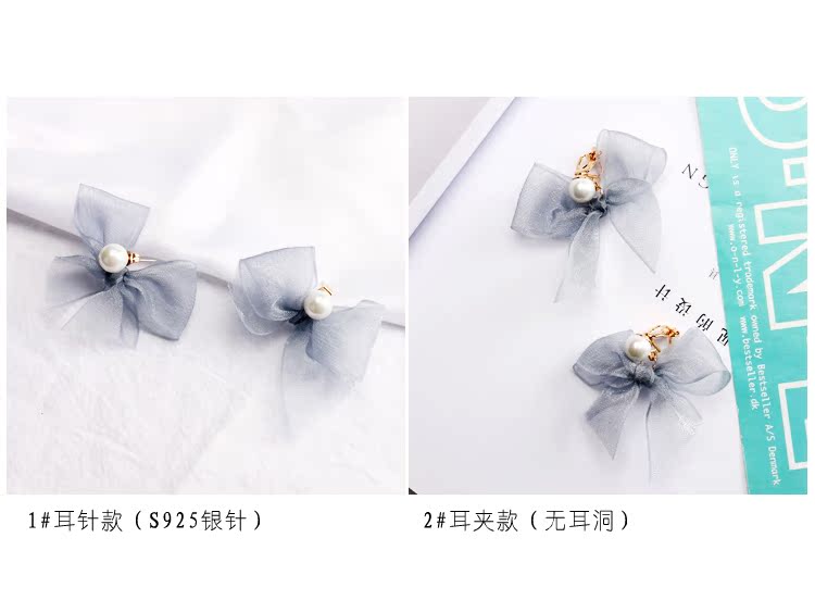 韓國簡約清新氣質蕾絲耳釘女蝴蝶結耳環超仙森系長款無耳洞耳夾1入