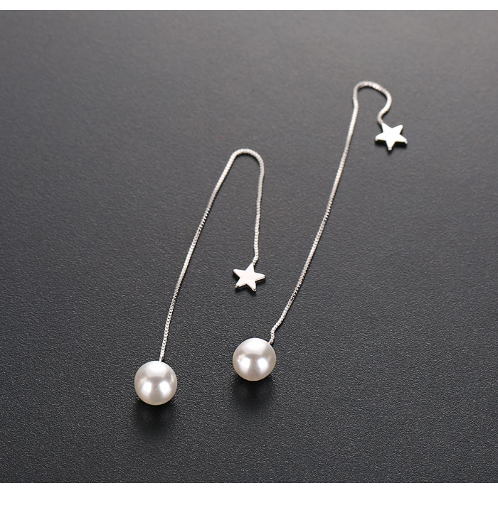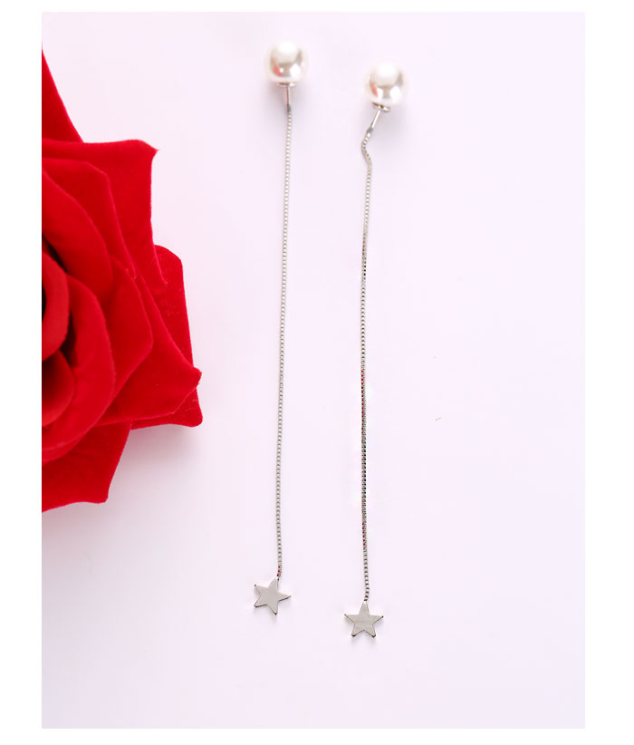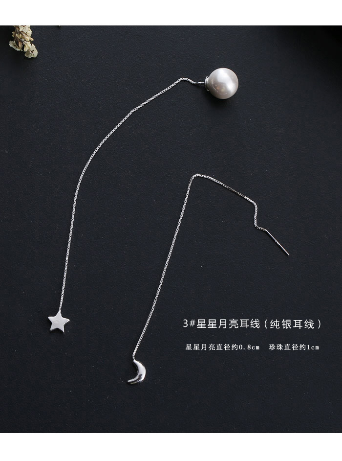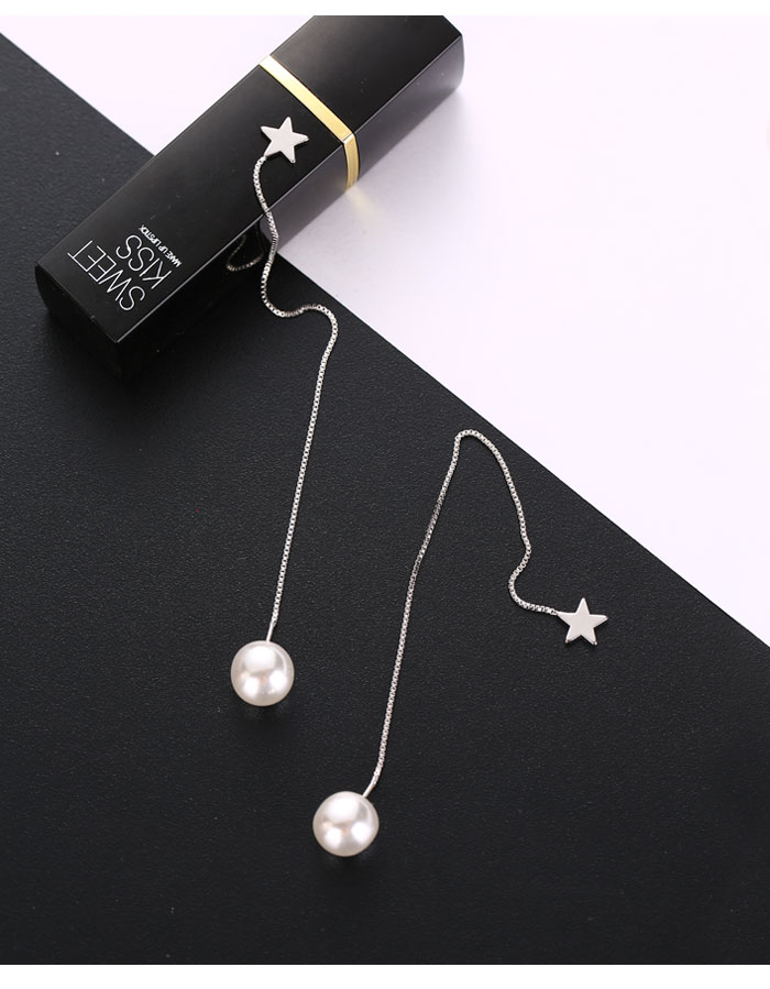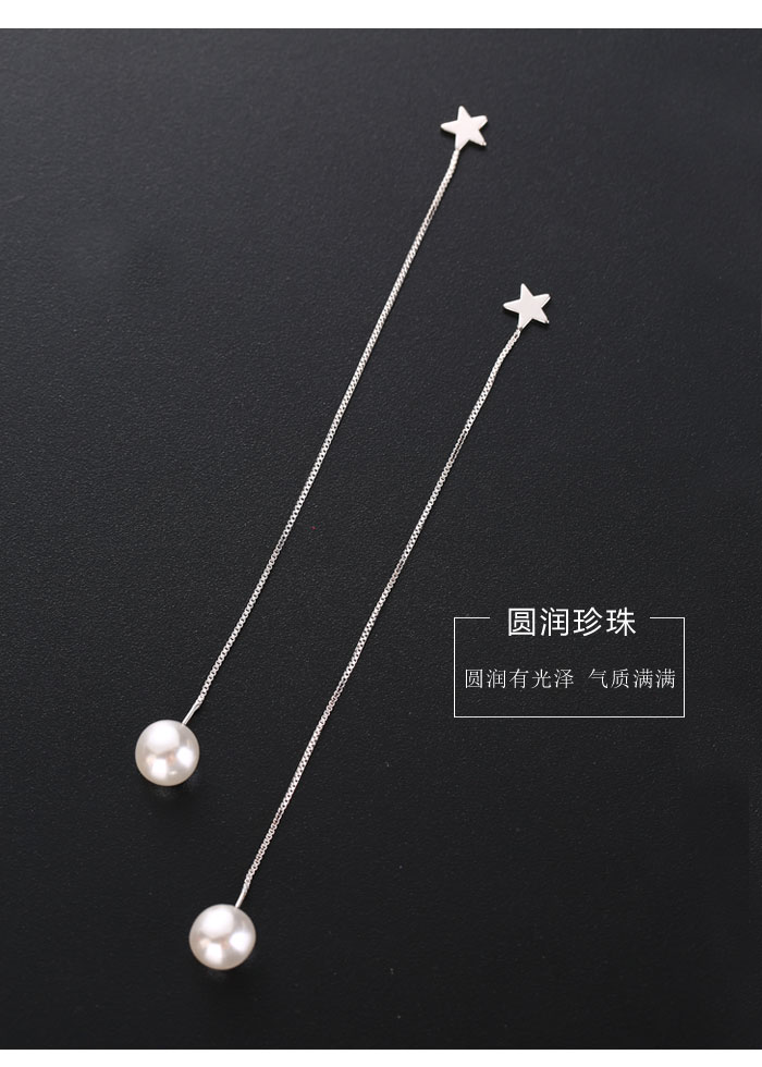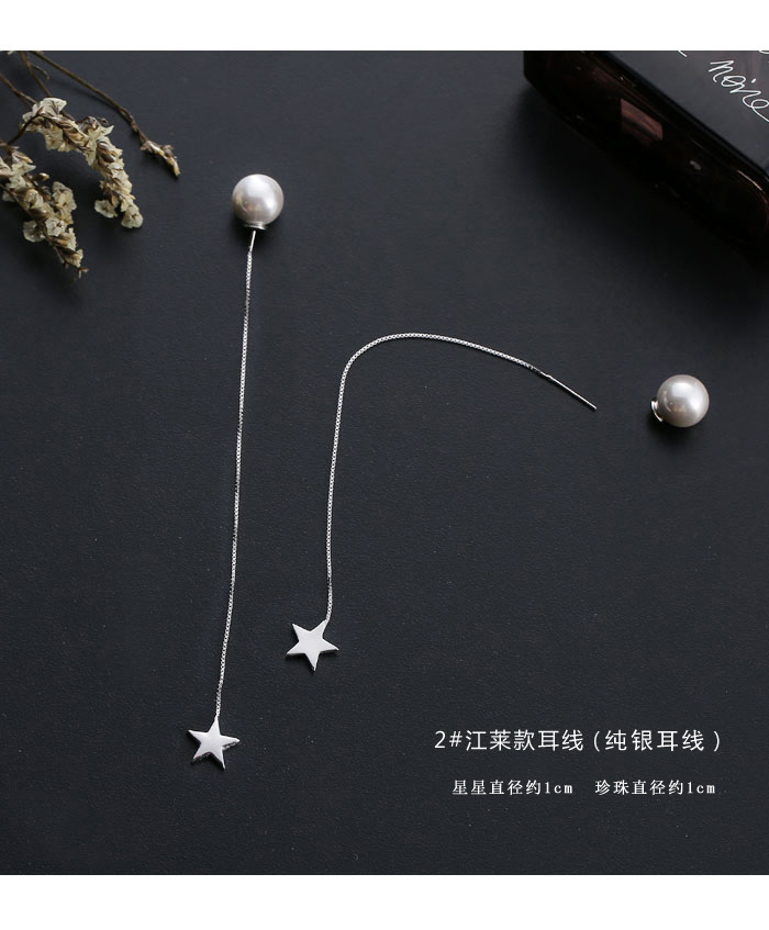 韓國氣質長款流蘇耳線耳鏈防過敏個性純銀簡約星星珍珠耳環女耳墜1入