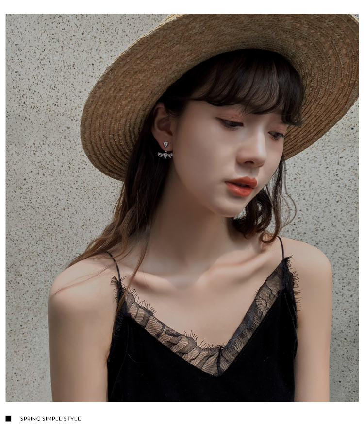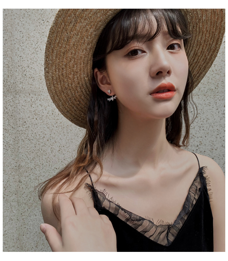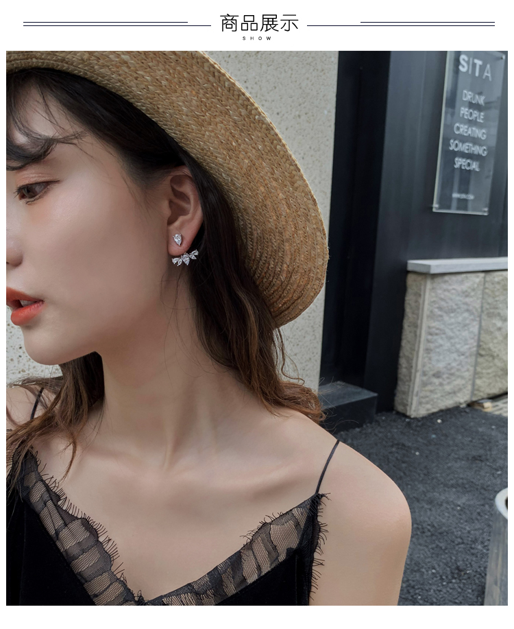 超閃水晶鋯石耳釘女純銀防過敏2019新款潮耳環超仙精致耳墜耳飾1入