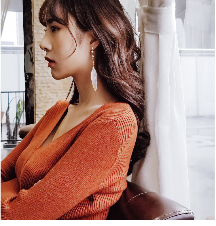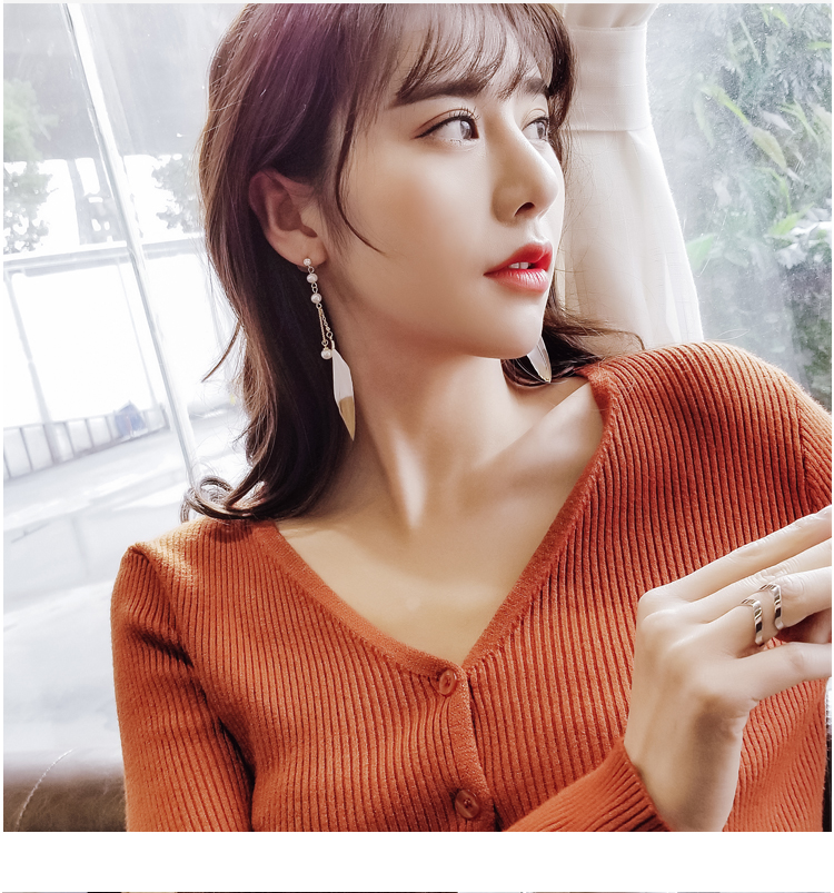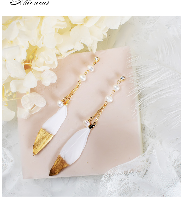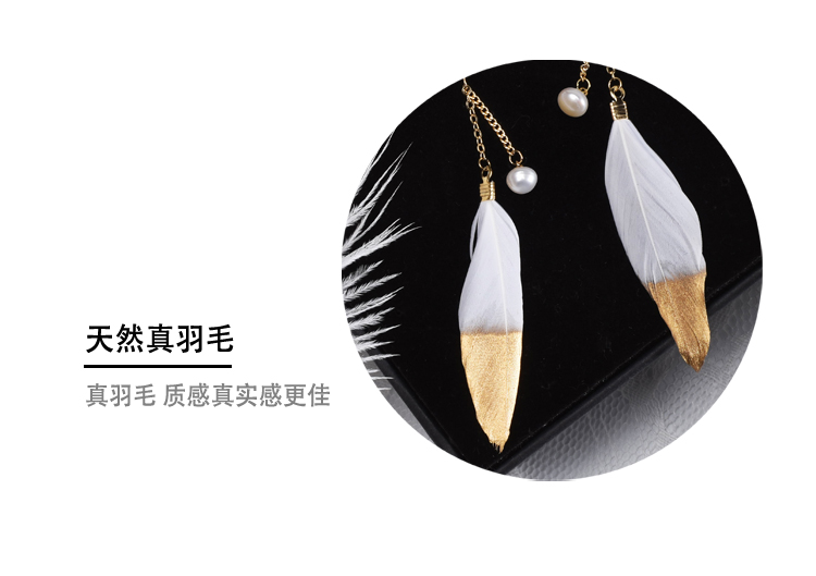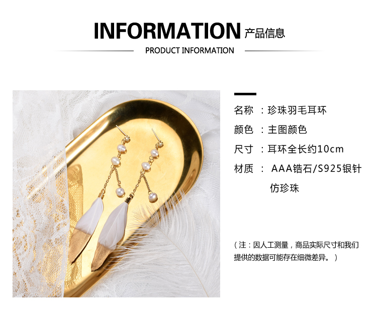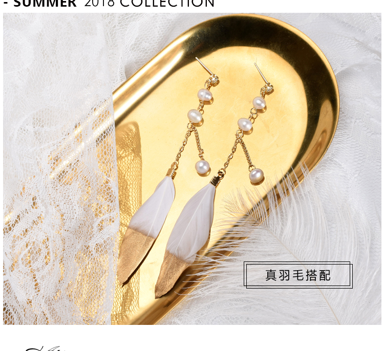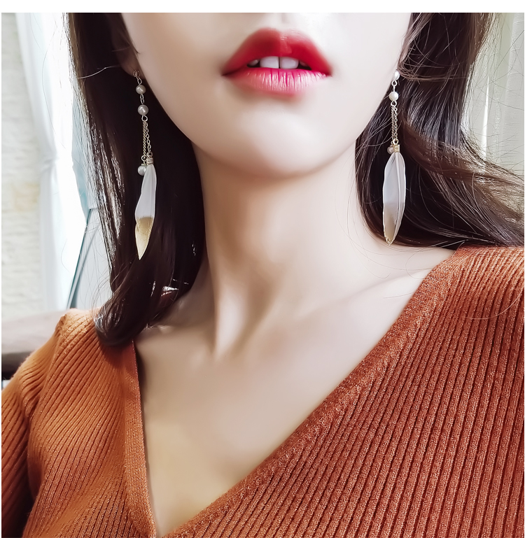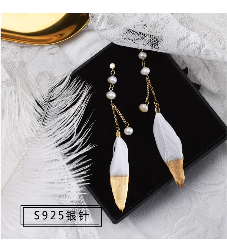 超仙羽毛耳環女流蘇珍珠耳墜韓國氣質長款個性簡約耳飾純銀耳釘1入