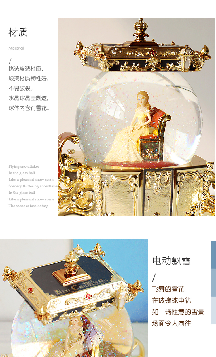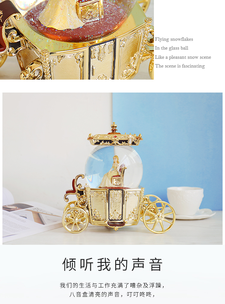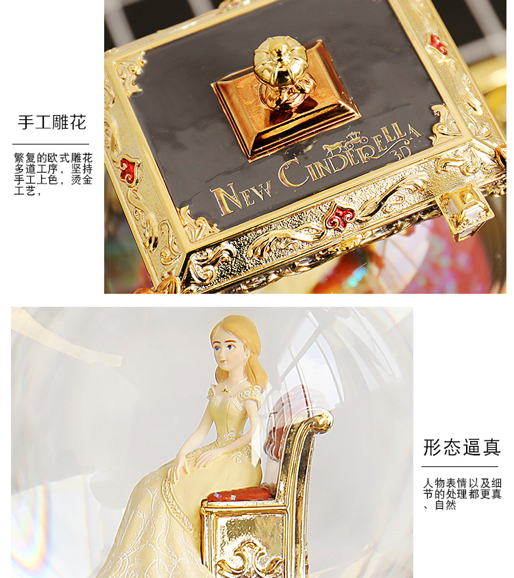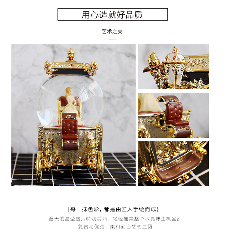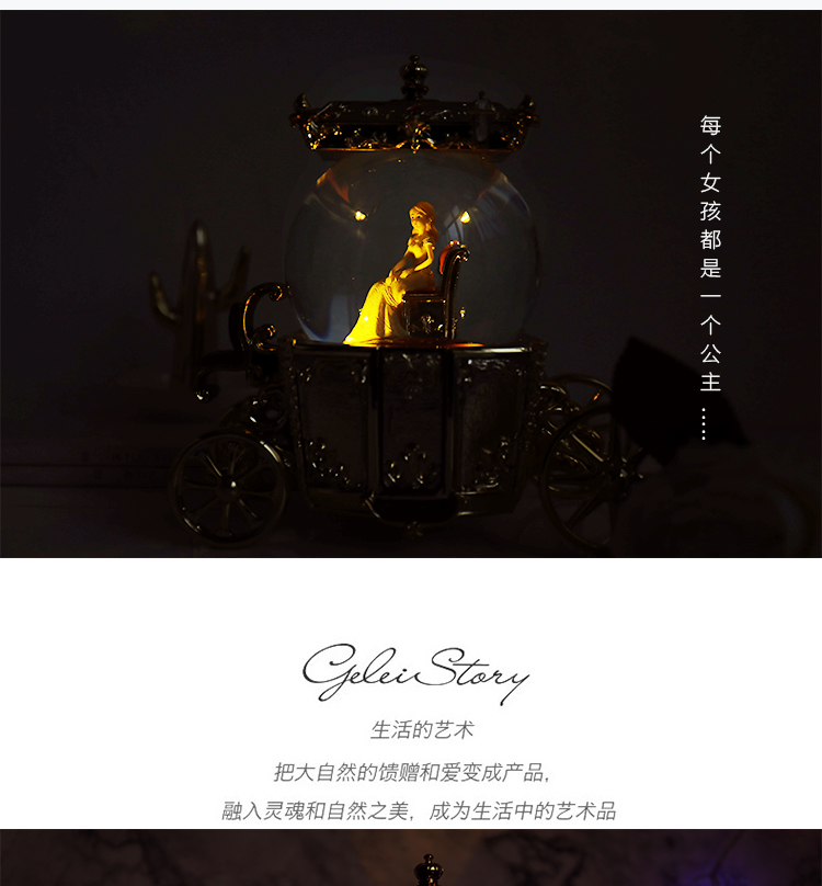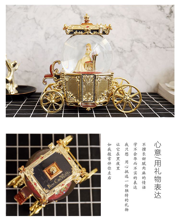 JARLL灰姑娘水晶球馬車音樂盒八音盒情人節新年生日戀人創意禮物1入