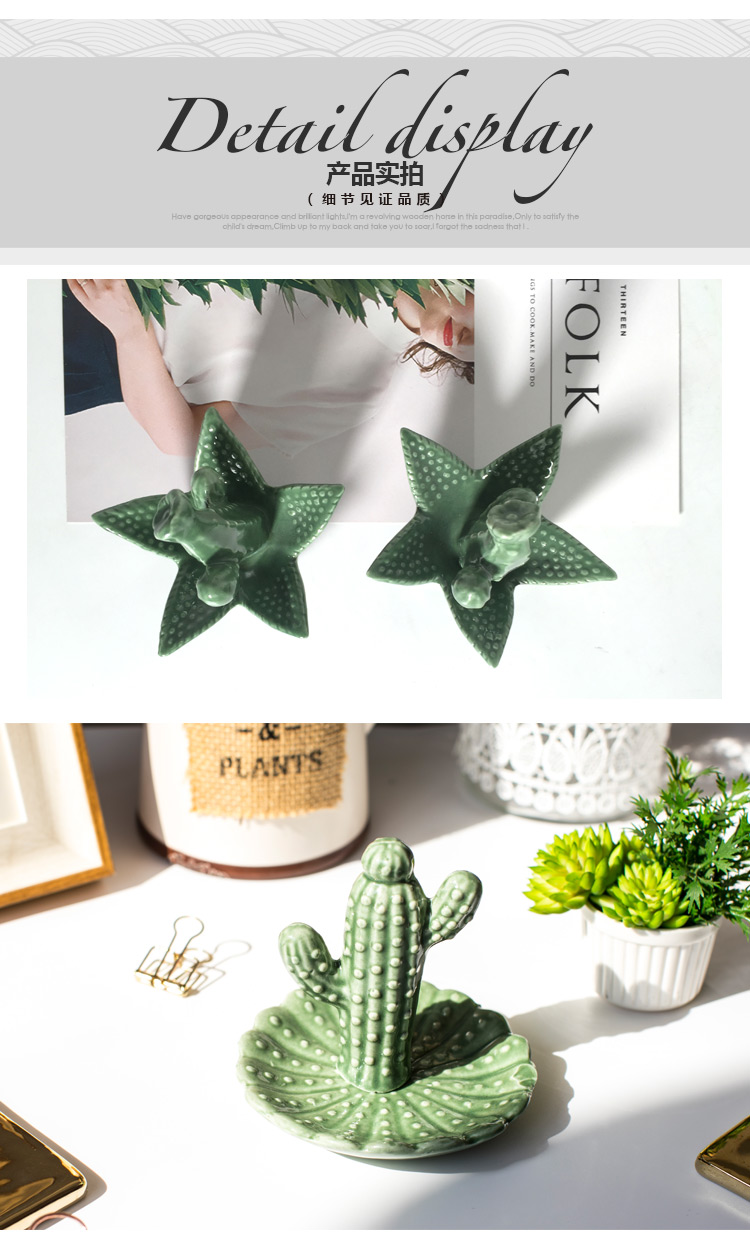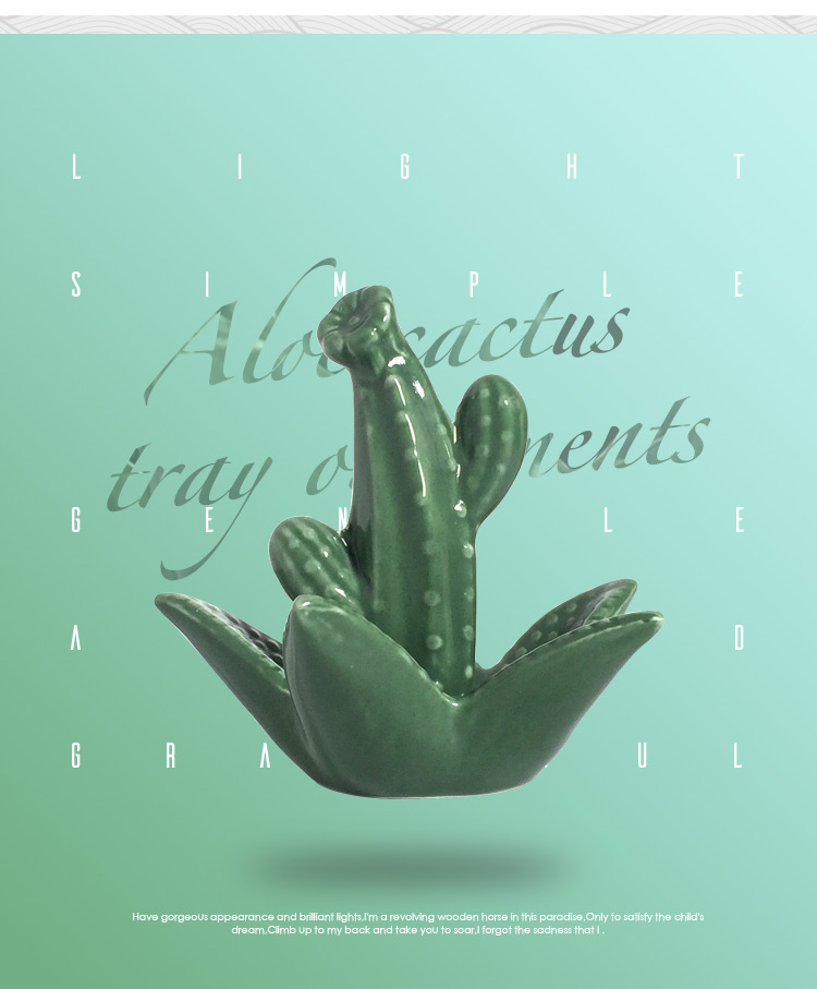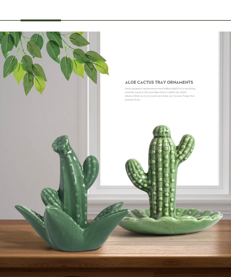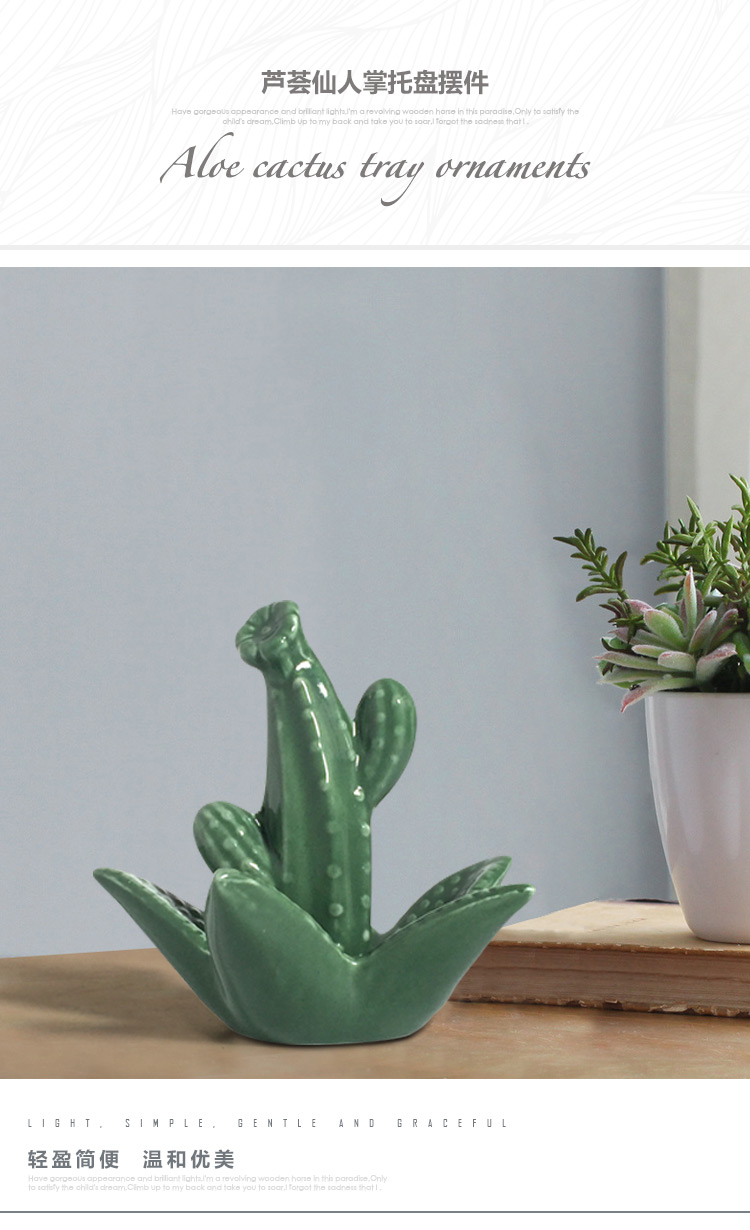 現代簡約桌面裝飾品創意陶瓷小擺件工藝品仿真蘆薈仙人掌首飾托盤1入