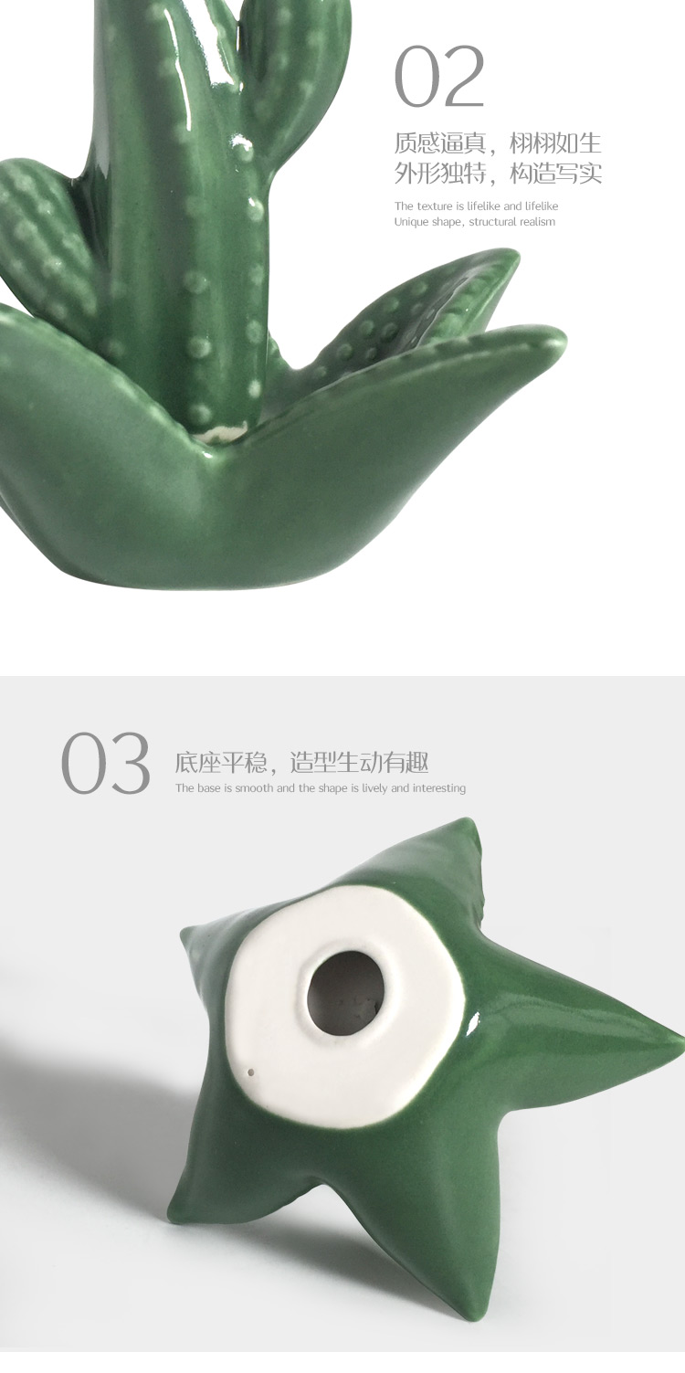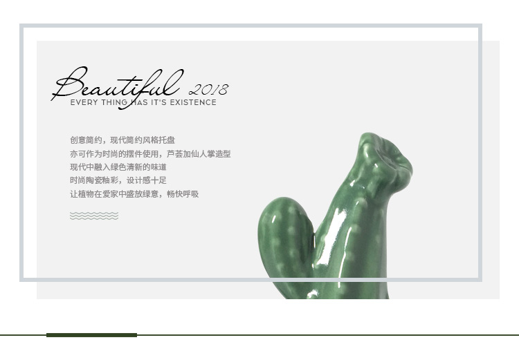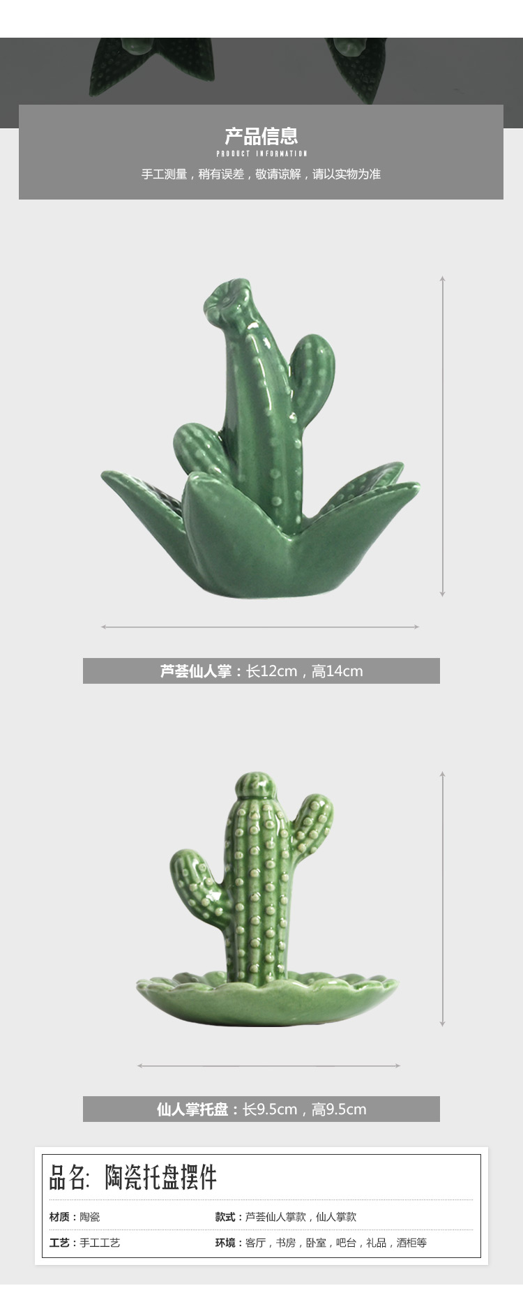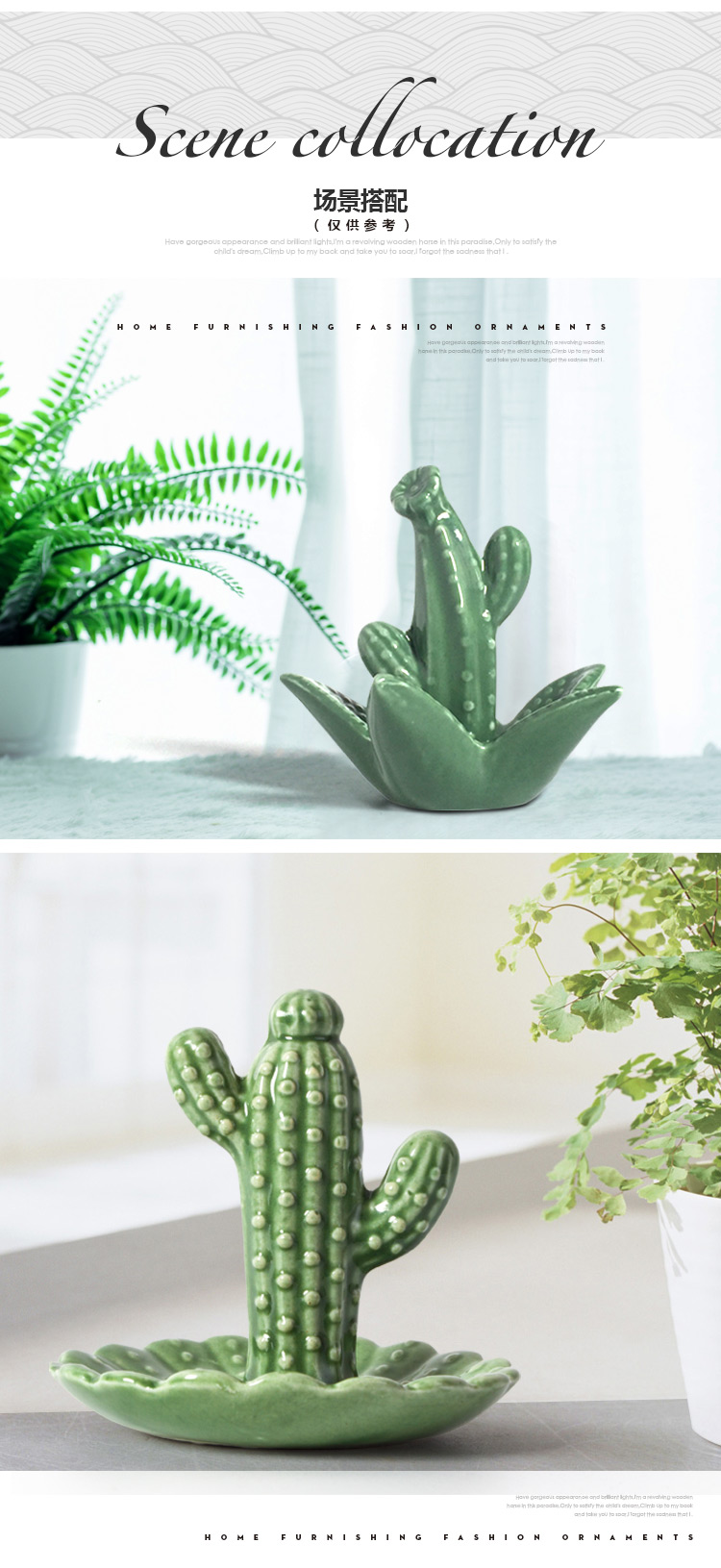 現代簡約桌面裝飾品創意陶瓷小擺件工藝品仿真蘆薈仙人掌首飾托盤1入