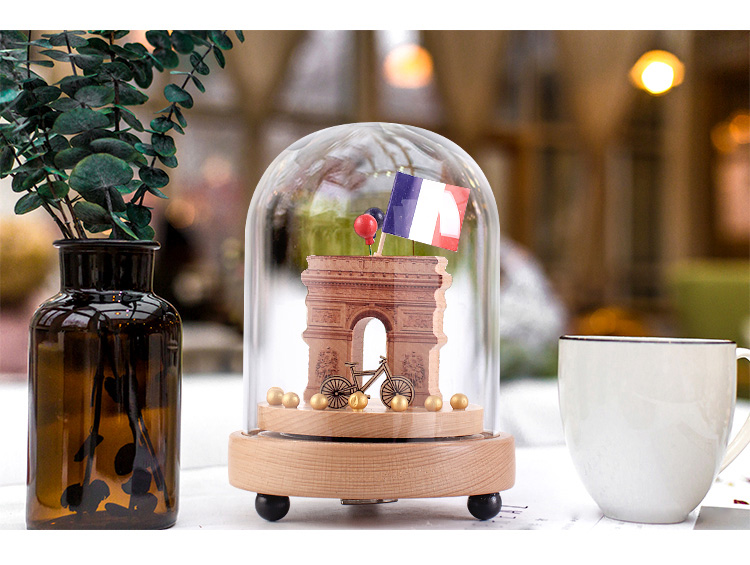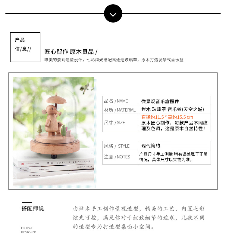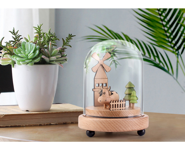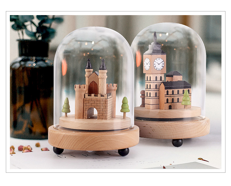 七彩創意微景觀玻璃罩木質音樂盒天空之城旋轉八音盒生日禮物擺件1入