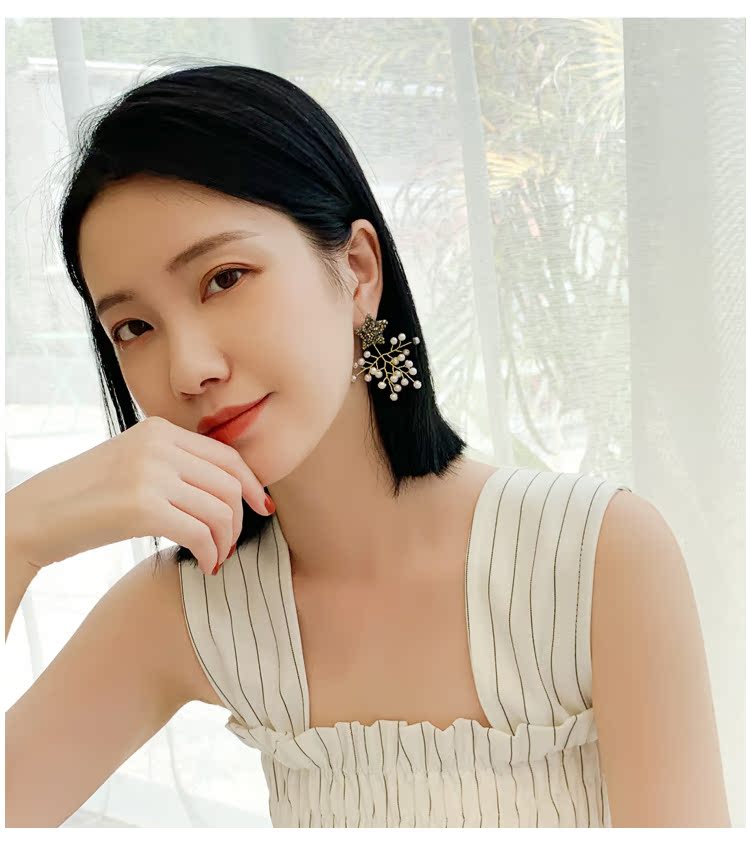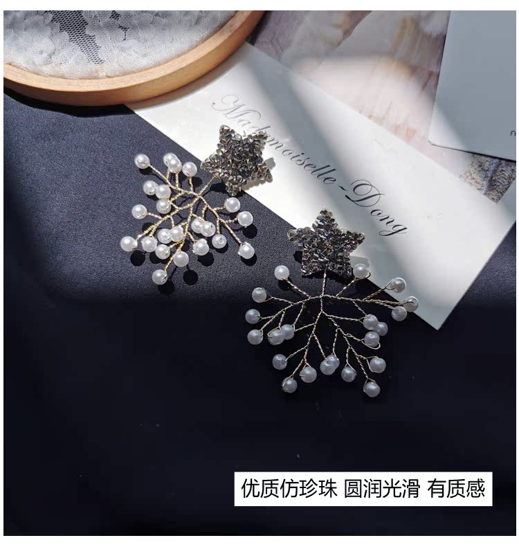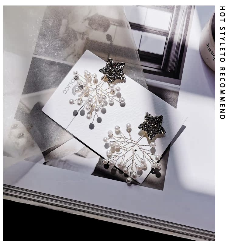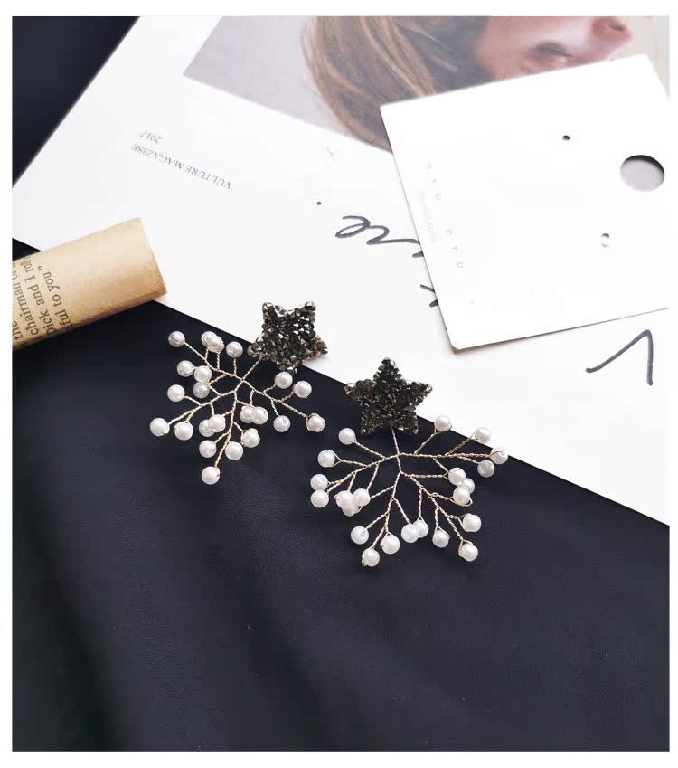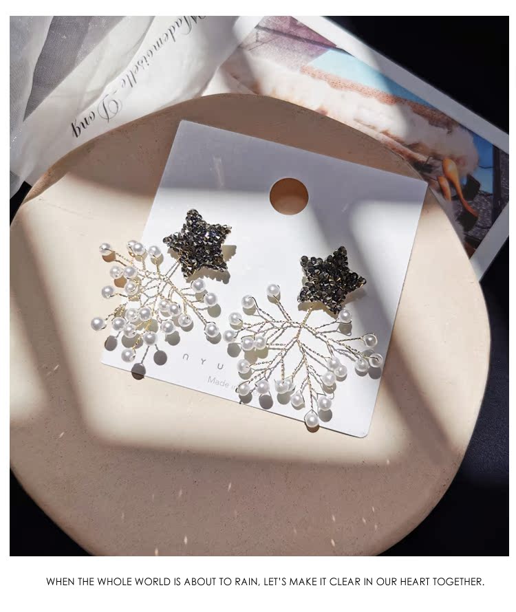 2019新款潮時尚個性夸張大耳環女網紅氣質純銀五角星耳釘珍珠耳墜1入