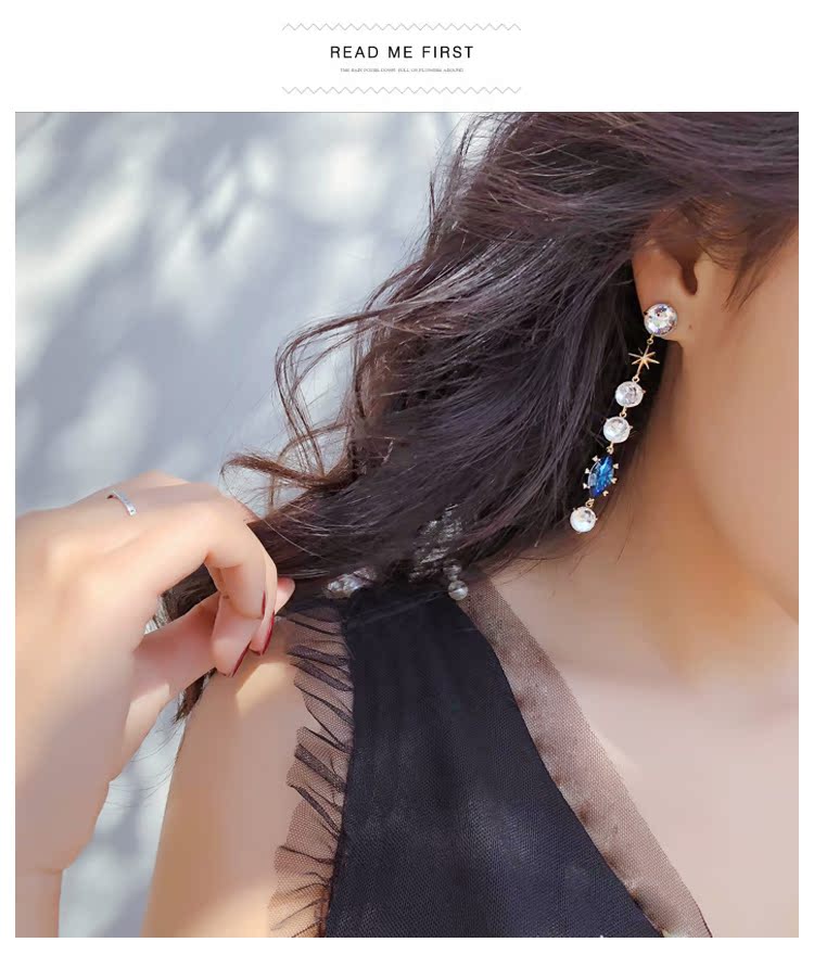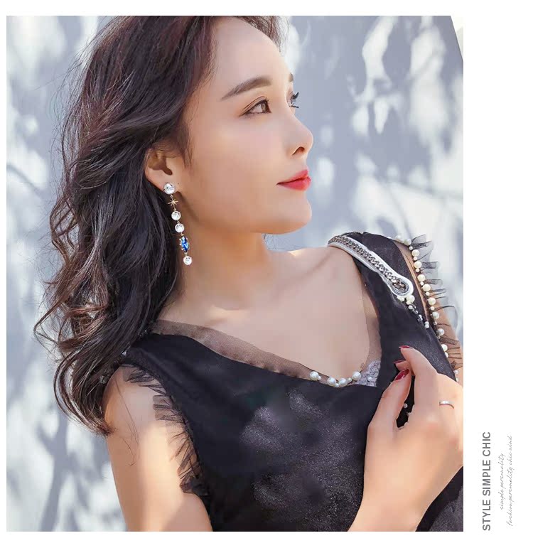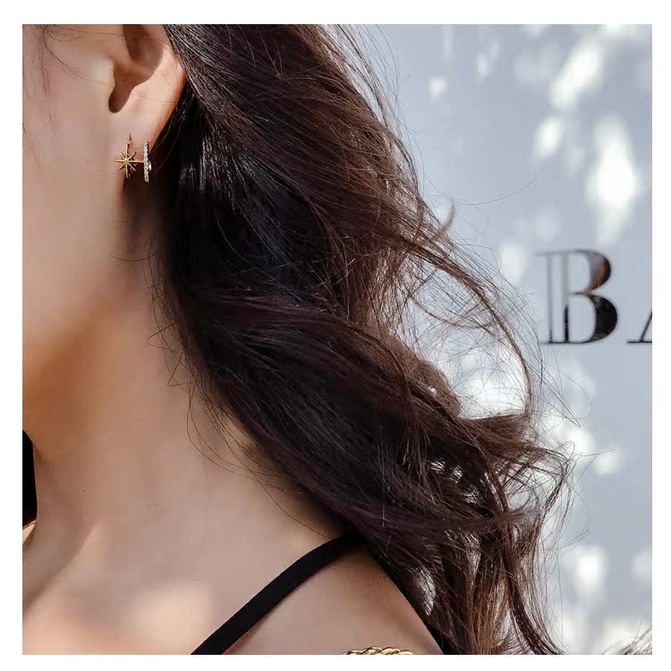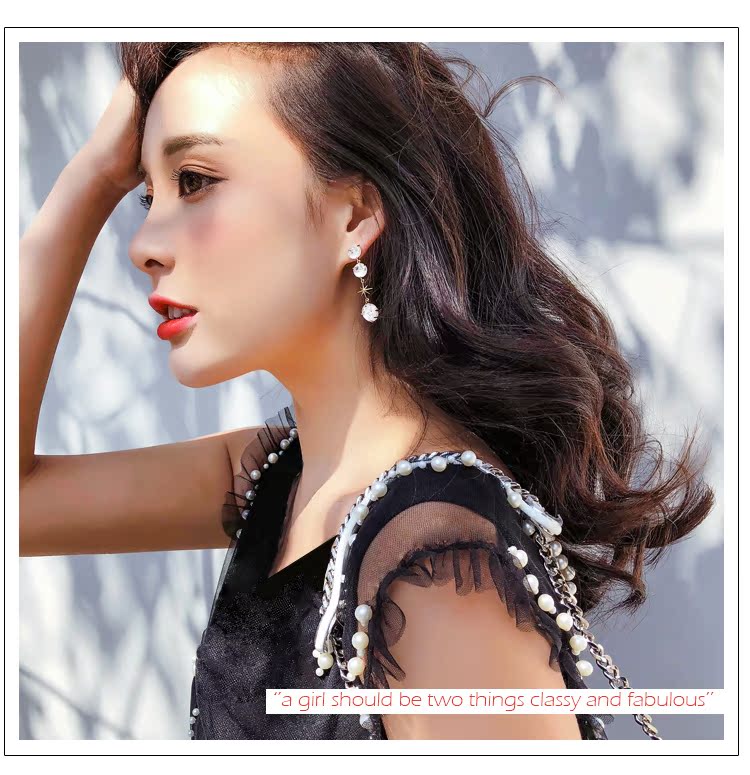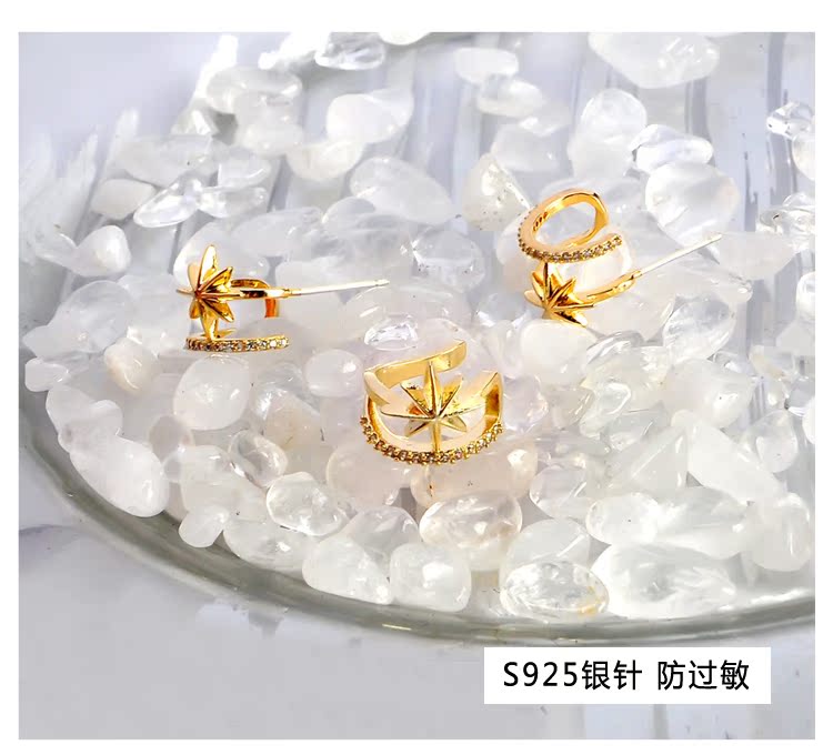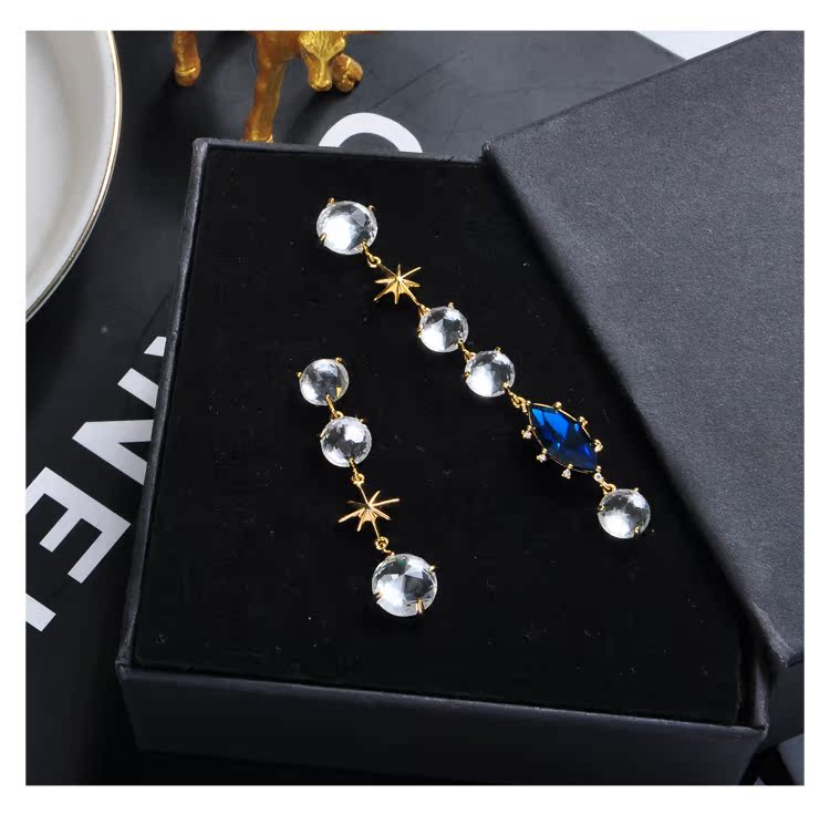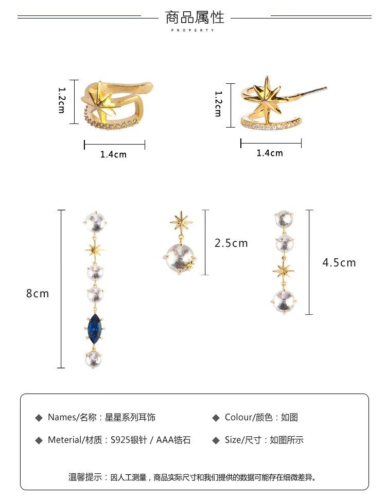 超閃水晶鋯石耳環女韓國氣質長款個性不對稱耳墜耳骨夾純銀耳釘1入