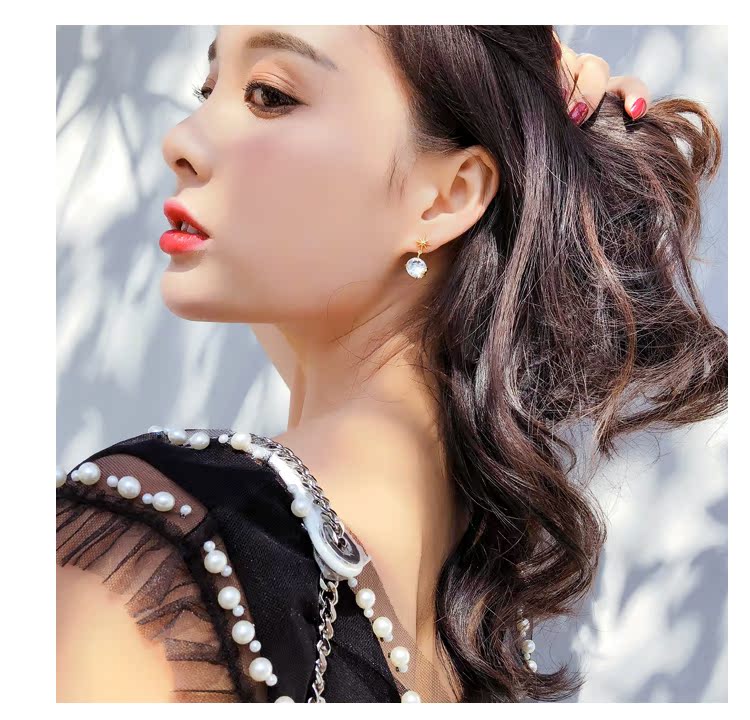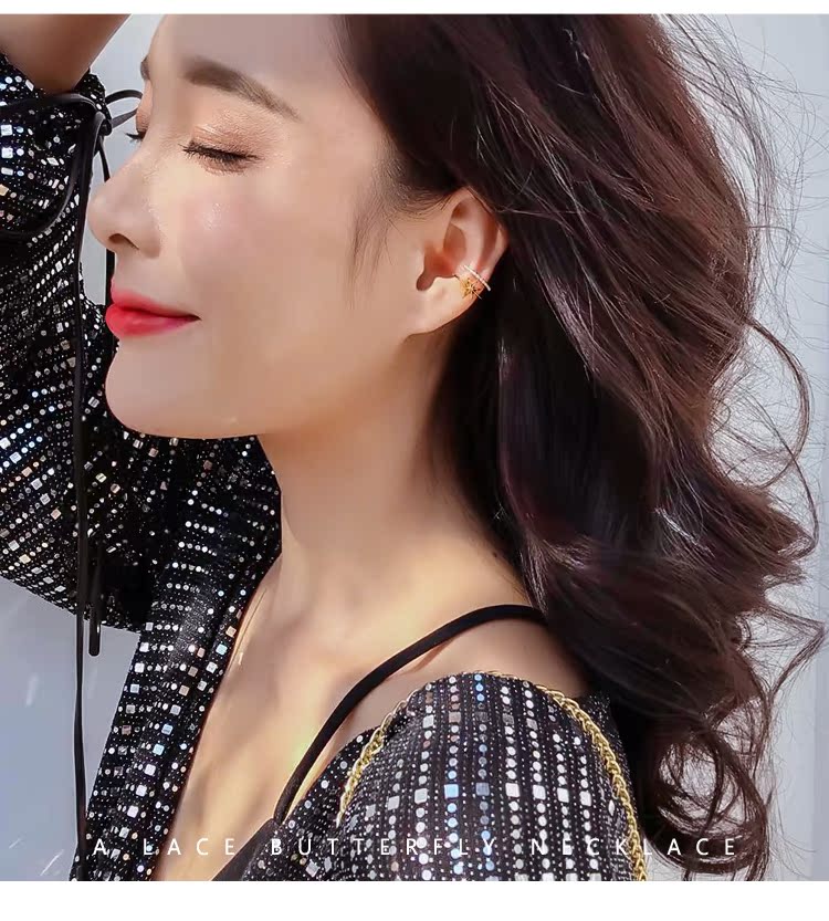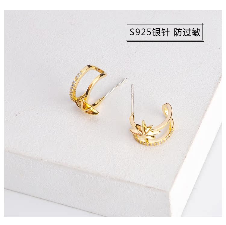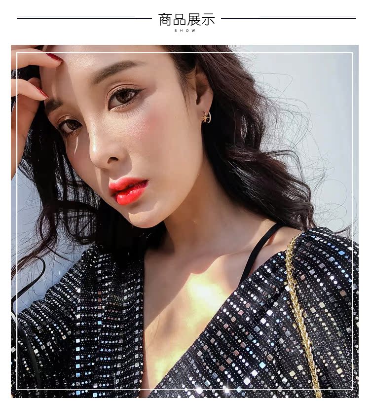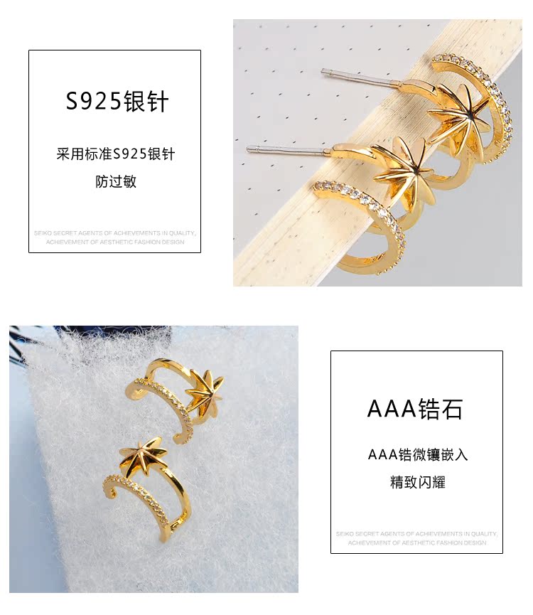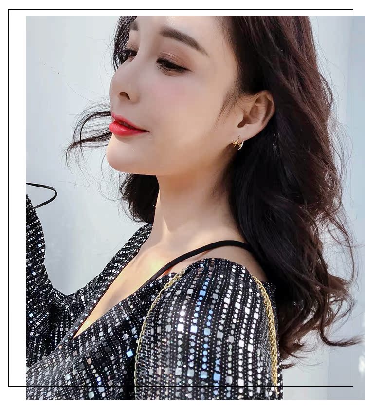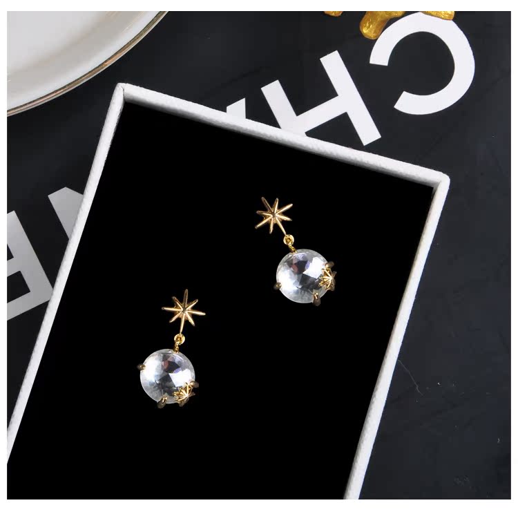 超閃水晶鋯石耳環女韓國氣質長款個性不對稱耳墜耳骨夾純銀耳釘1入
