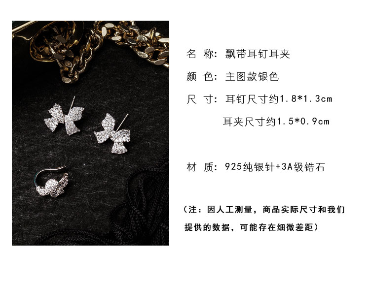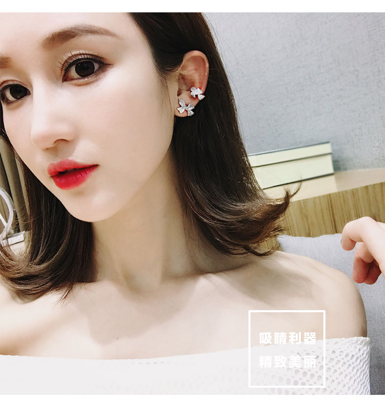 韓國名媛氣質超閃水鉆耳釘女防過敏925純銀鋯石耳環耳骨夾耳扣1入