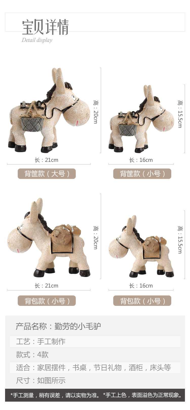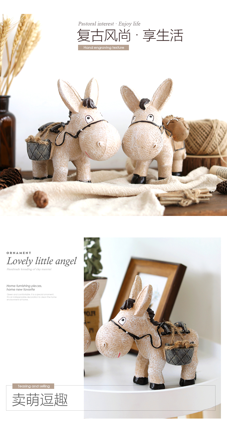 創意卡通毛驢樹脂擺件家居客廳電視酒柜裝飾品工藝品擺設生日禮物1入
