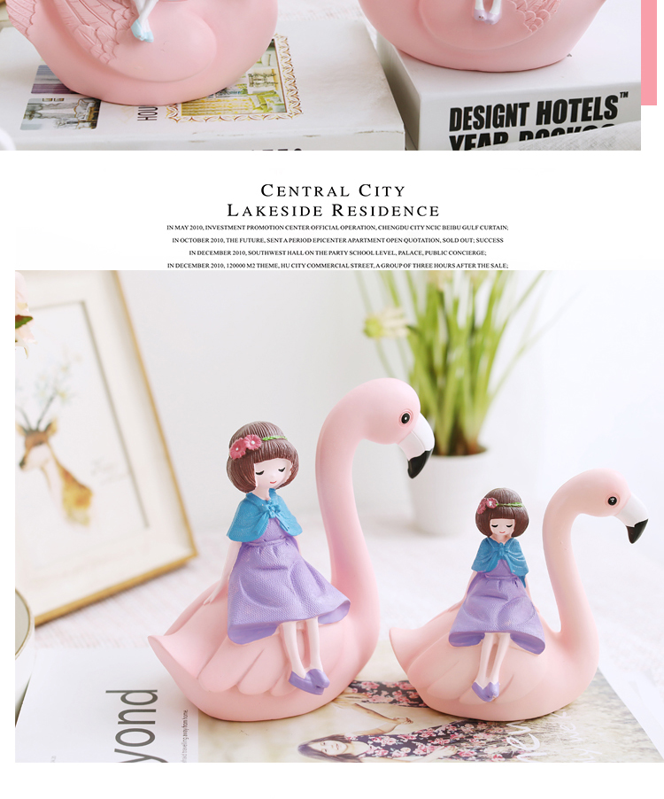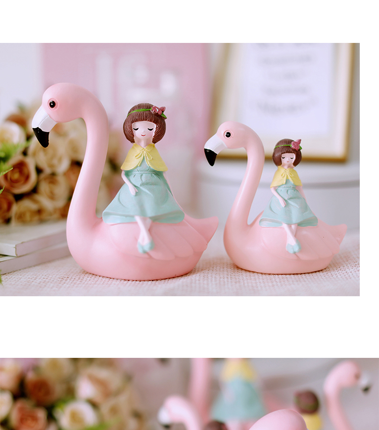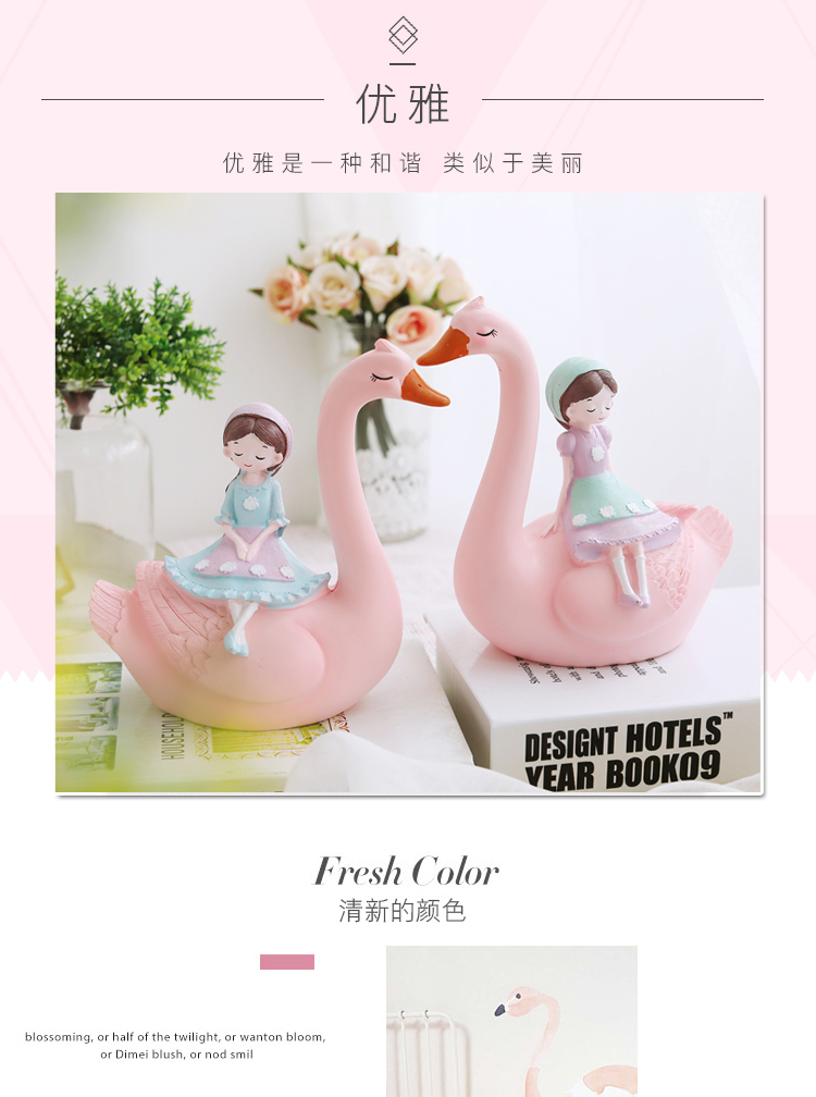卡通火烈鳥天鵝女孩擺件創意ins家居裝飾品客廳酒柜擺設兒童禮物1入
