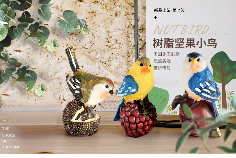 美式創意家居裝飾品擺件酒柜客廳樣板間工藝品辦公室堅果小鳥擺設1入