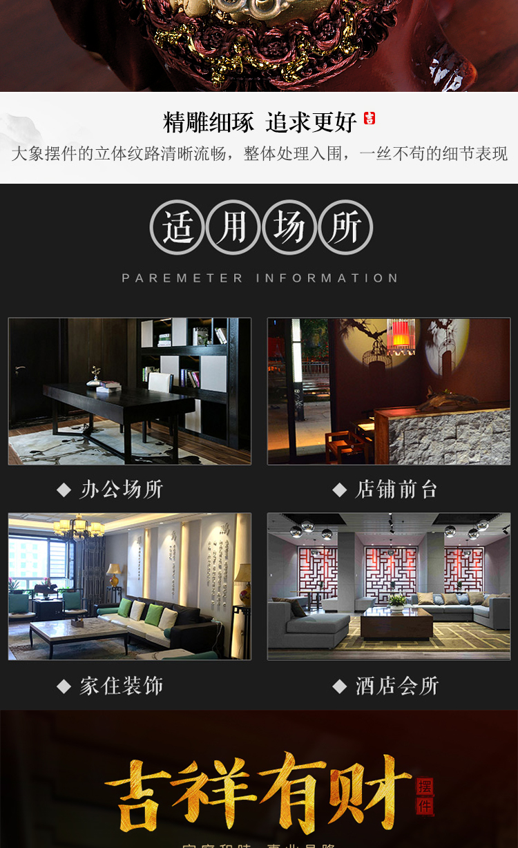家居裝飾品鎮宅招財風水大象擺件辦公室發財擺設客廳電視柜工藝品1入