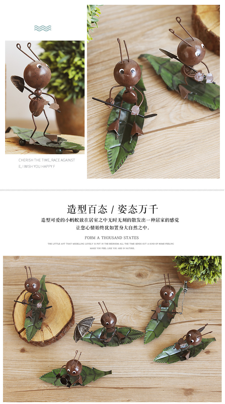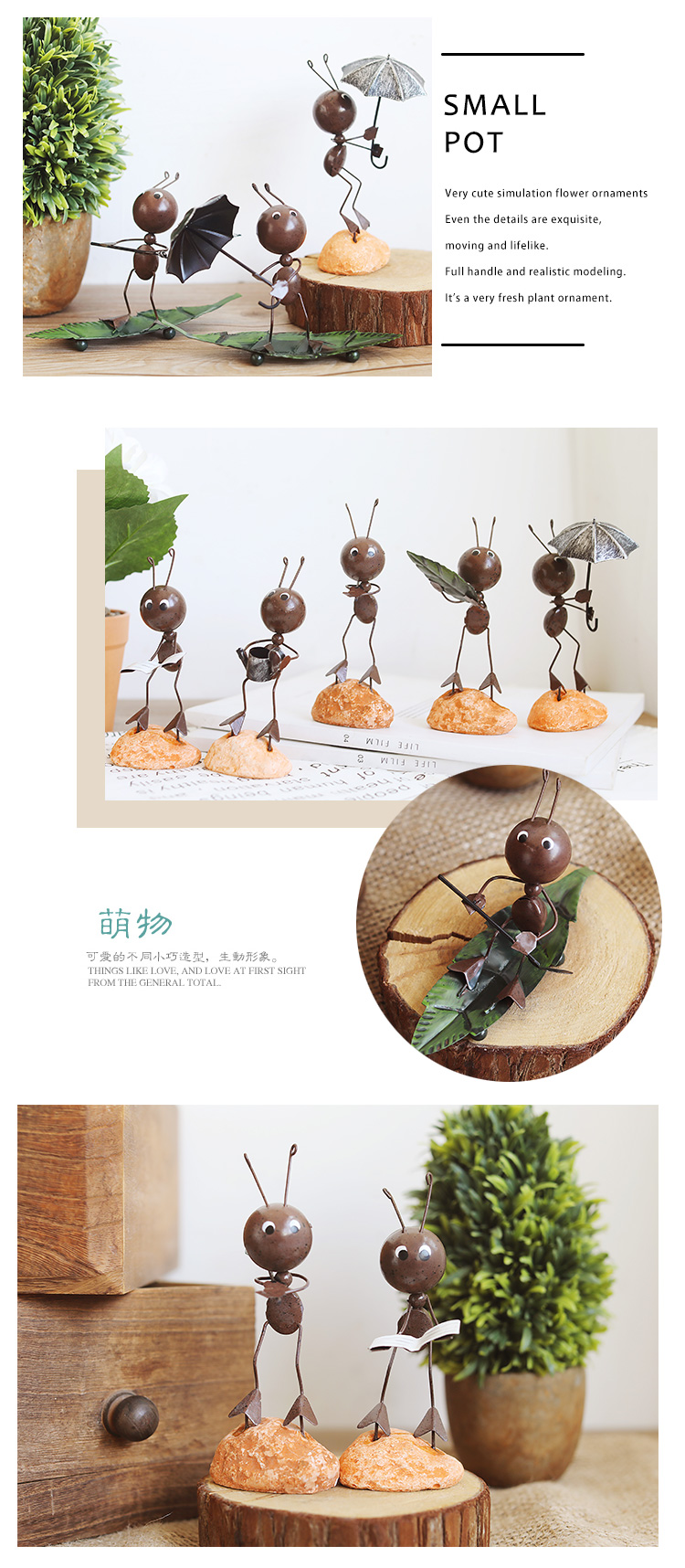 ins鐵藝螞蟻小擺件創意家居客廳酒柜電視柜擺設兒童房間裝飾品1入