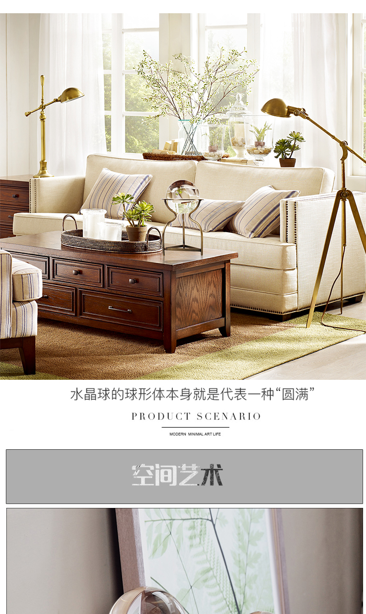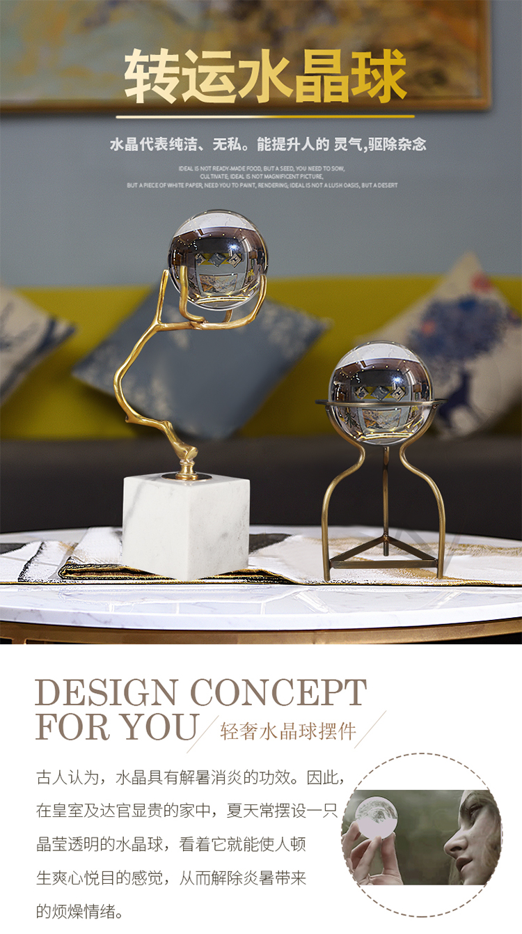 創意招財轉運水晶球擺件現代簡約家居客廳書房電視酒柜裝飾品擺設1入